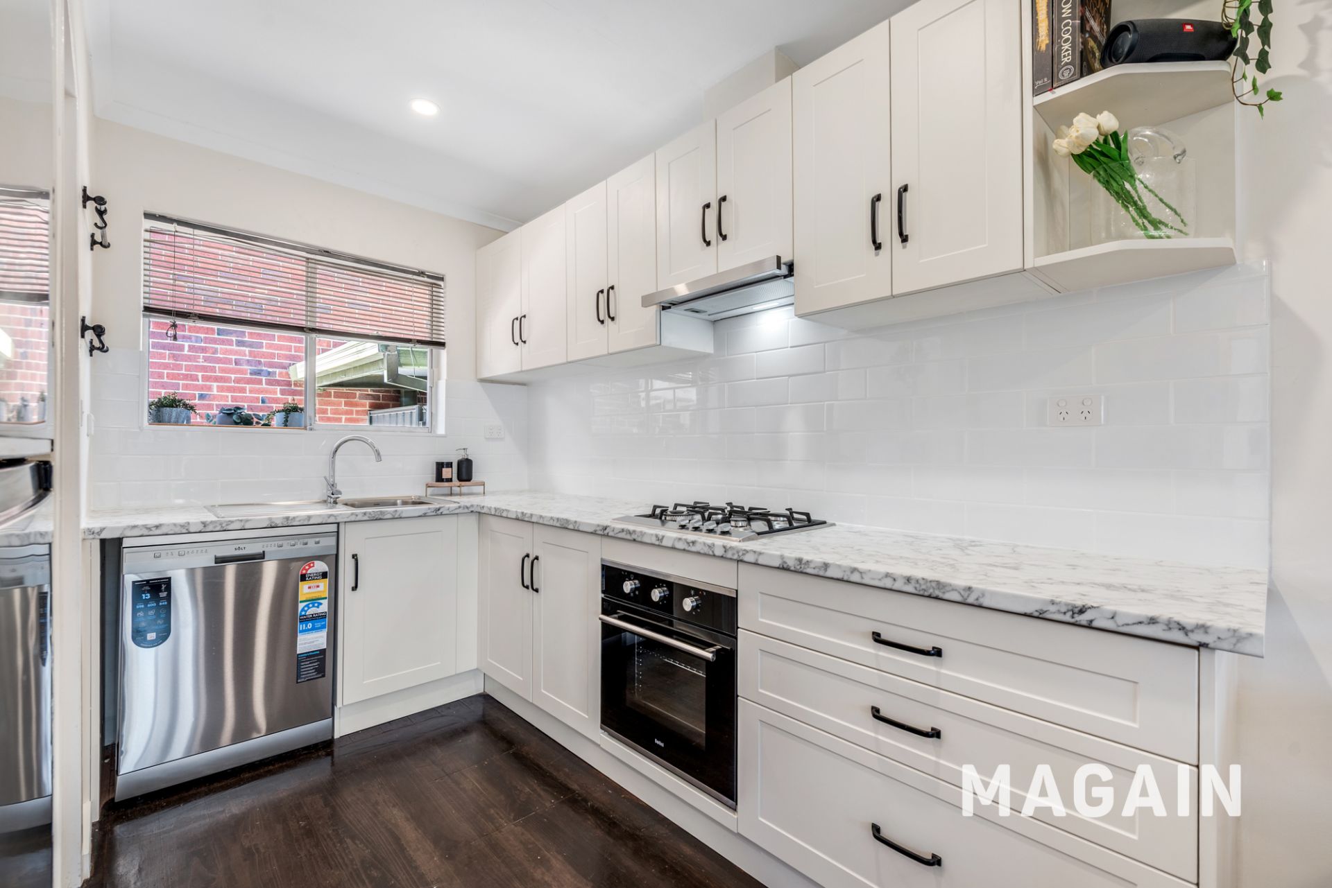 The home features a functional two-bedroom layout, with both bedrooms complete with built-in robes and a ceiling fan servicing the main bedroom for added comfort. Roller shutters are fitted to the bedroom windows and living room window, enhancing privacy, security and temperature control year-round. A centrally located bathroom supports the practical floorplan, while the renovated kitchen provides a modern and refreshed space for everyday cooking and entertaining. The kitchen is complete with new appliances, including a dishwasher, oven and gas cooktop.