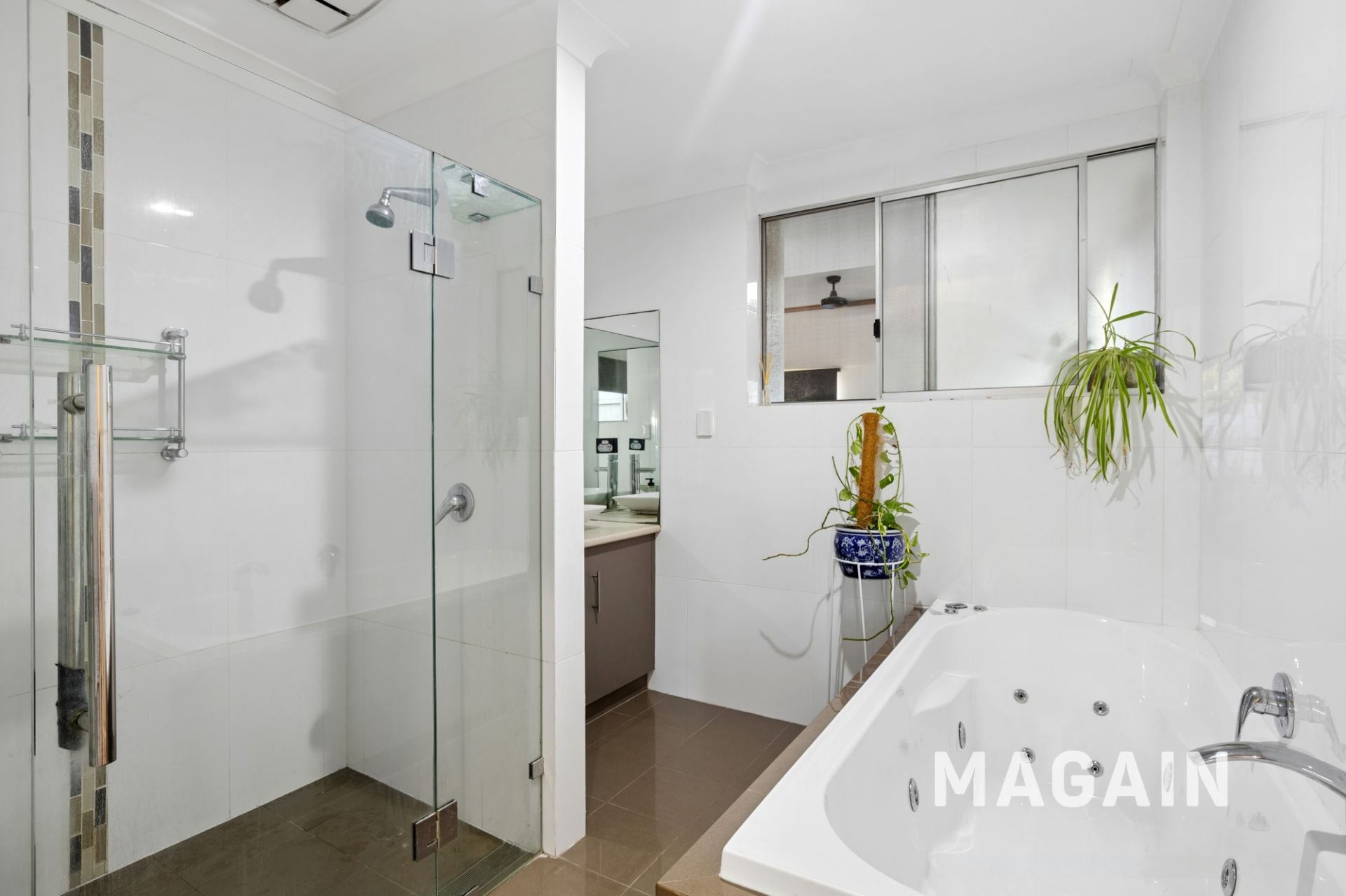 Down the hallway is where you'll find bedrooms one, two and three. The main bedroom comes with large built-in robes, bedroom two also has built-in robes and comes with a ceiling fan too. These bedrooms are serviced by an updated bathroom that features a double shower, a spa bath, separate vanity and floor to ceiling tiles.