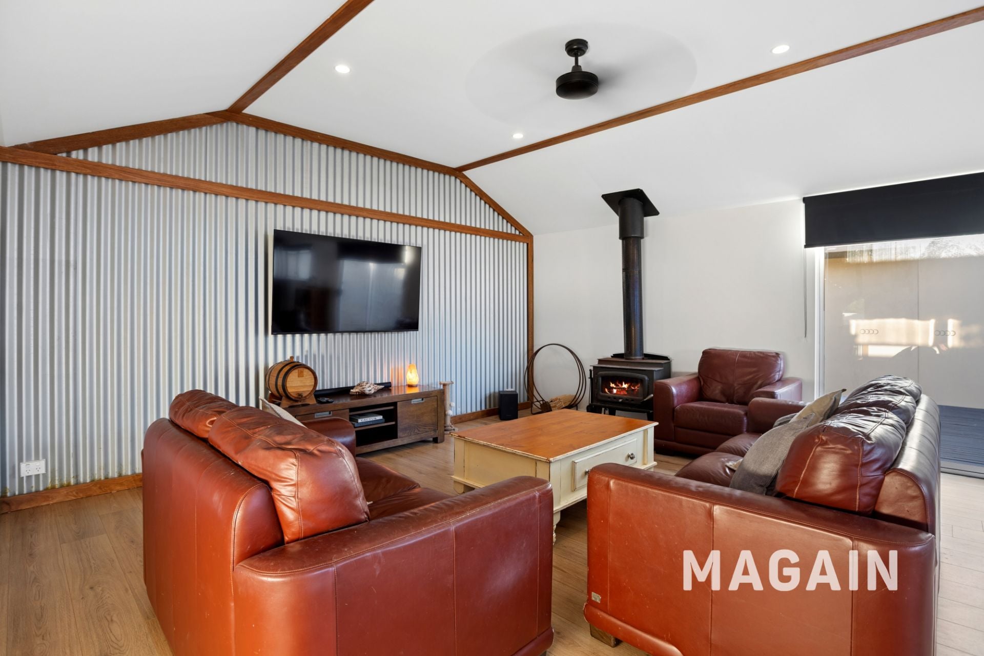 There is a large additional living area at the rear of the home that features lofty ceilings with dual ceiling fans and there is a slow combustion heater to keep you and your family cosy through the cooler months of the year. There are two sets of glass sliding doors that lead out to the rear deck and side yard from this area of the home.