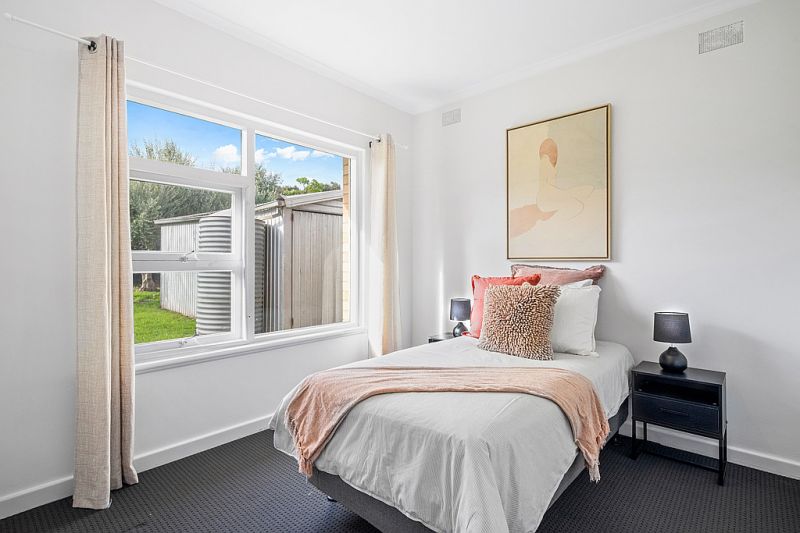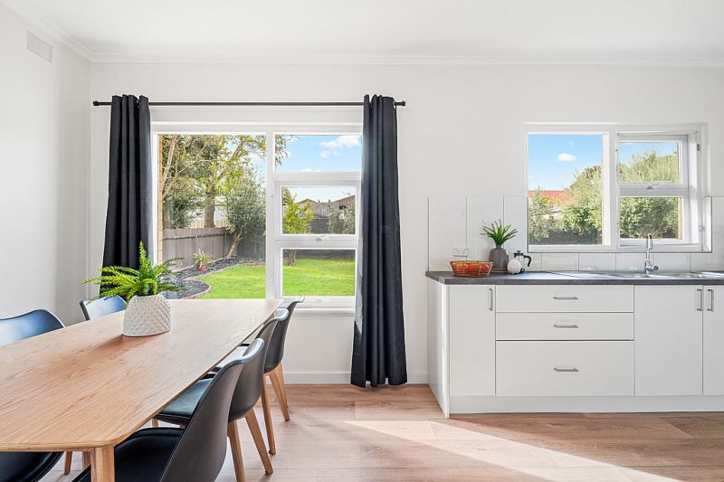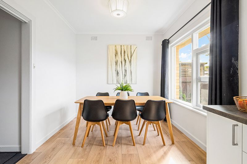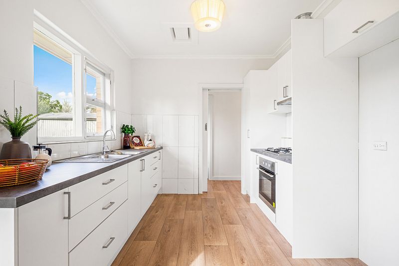 As you approach the home you will appreciate the welcoming front garden, with nice lawn and trees offering privacy. Entering into the freshly painted and floored home, you are greeted with a large lounge room with huge windows, allowing heaps of natural light to shine through. The dining room and updated kitchen flows smoothly from the lounge room, with plenty of bench space and cupboard storage. As you head to the rear wing of the home you will find three great sized bedrooms. The bathroom is conveniently located near the bedrooms.