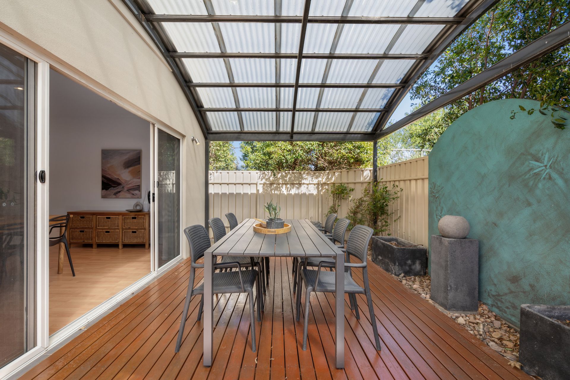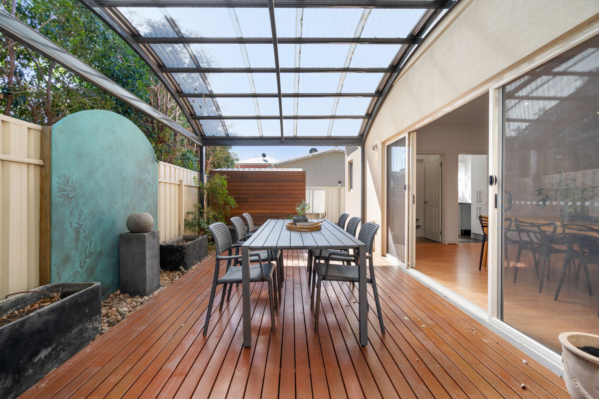 - Outdoor Undercover Entertaining area complete with decking, water feature and footlights installed