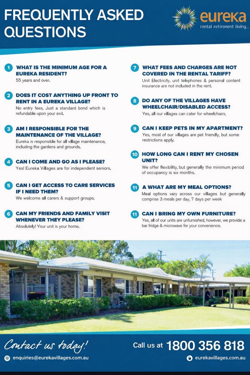 Further details see: https://www.eurekavillages.com.au/wp-content/uploads/Eureka-Villages-FAQs.pdf)
