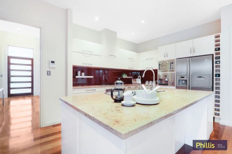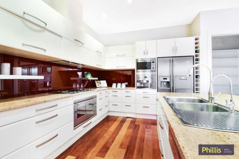 Magnificent designer kitchen with island bench, huge Butlers pantry, built in double plumbed fridge, wine storage and Miele appliances