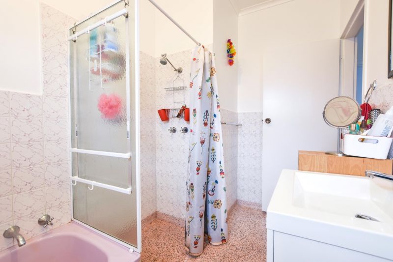 > along with the kitchen upgrade you will be happy to see the main bathroom has been updated with a new vanity but keeps its lovely original Terrazzo floors