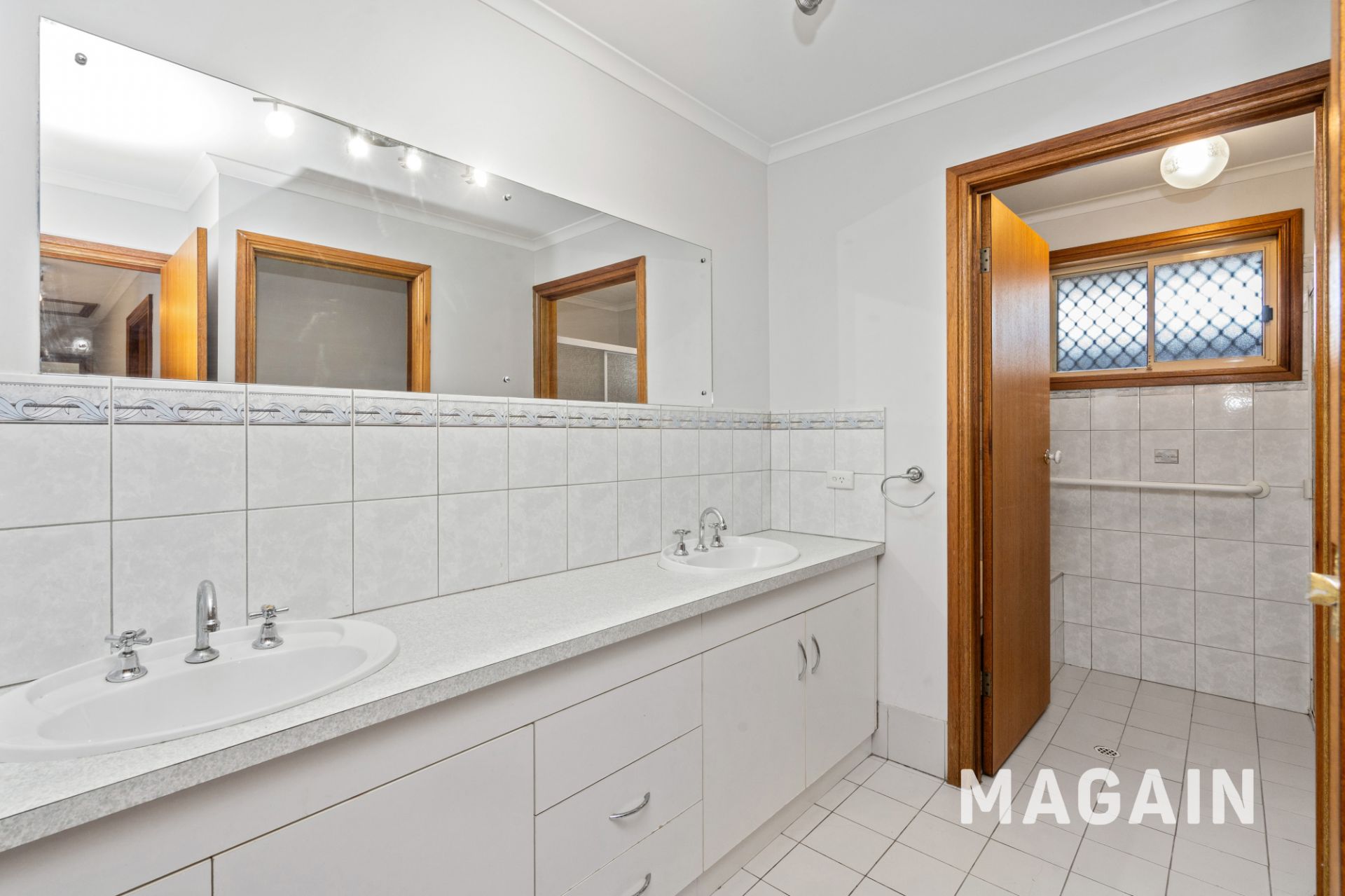 - 3 Way bathroom including a powder room with double vanity and large wall mirror which leads to main bathroom featuring a separate shower and bath for your relaxation