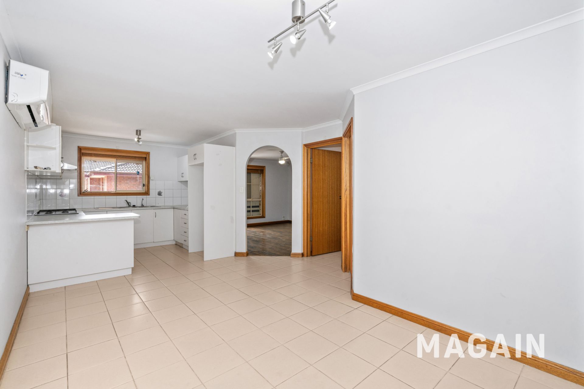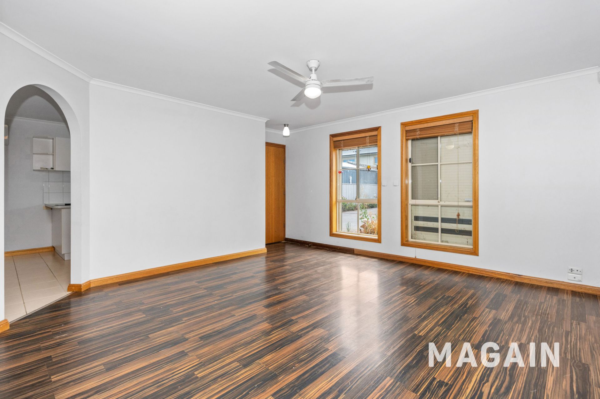 - Good sized living area with easy to maintain hardwood flooring and ceiling fan