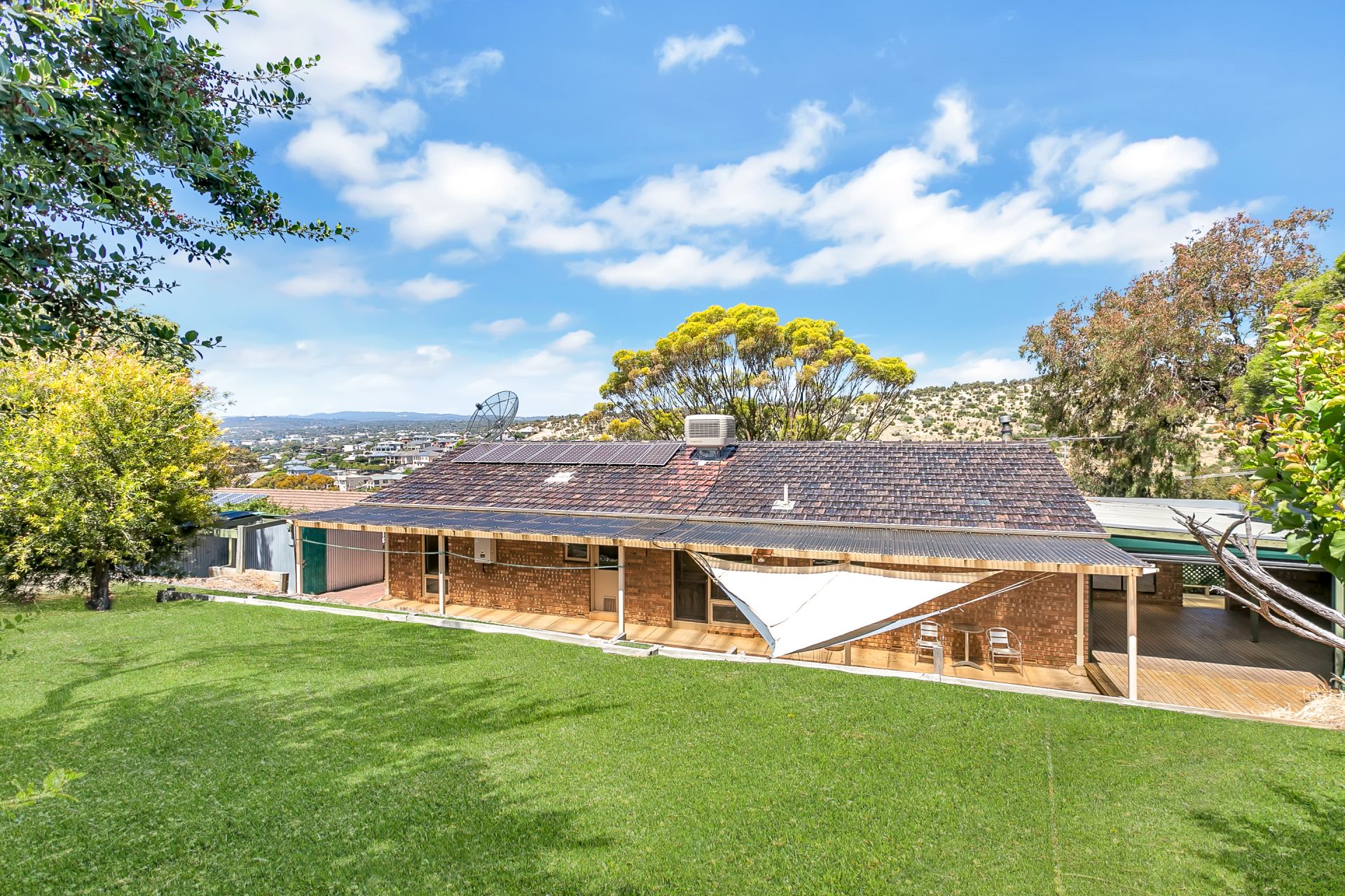 Moving outside you will be impressed by the full-length veranda which creates the perfect private entertaining space for your guests. The split level yard is studded with a variety of established trees and has sweeping views which creates the perfect oasis for the budding gardener or imaginative children. Two garden sheds, one of which is a workshop adjacent the double carport with automatic roller door, to store away all your tools and equipment to keep your patio clear of clutter. All of the front windows have automatic roller shutters for extra piece of mind and to keep out the heat in summer, 8 solar panels have also been installed to keep costs low.