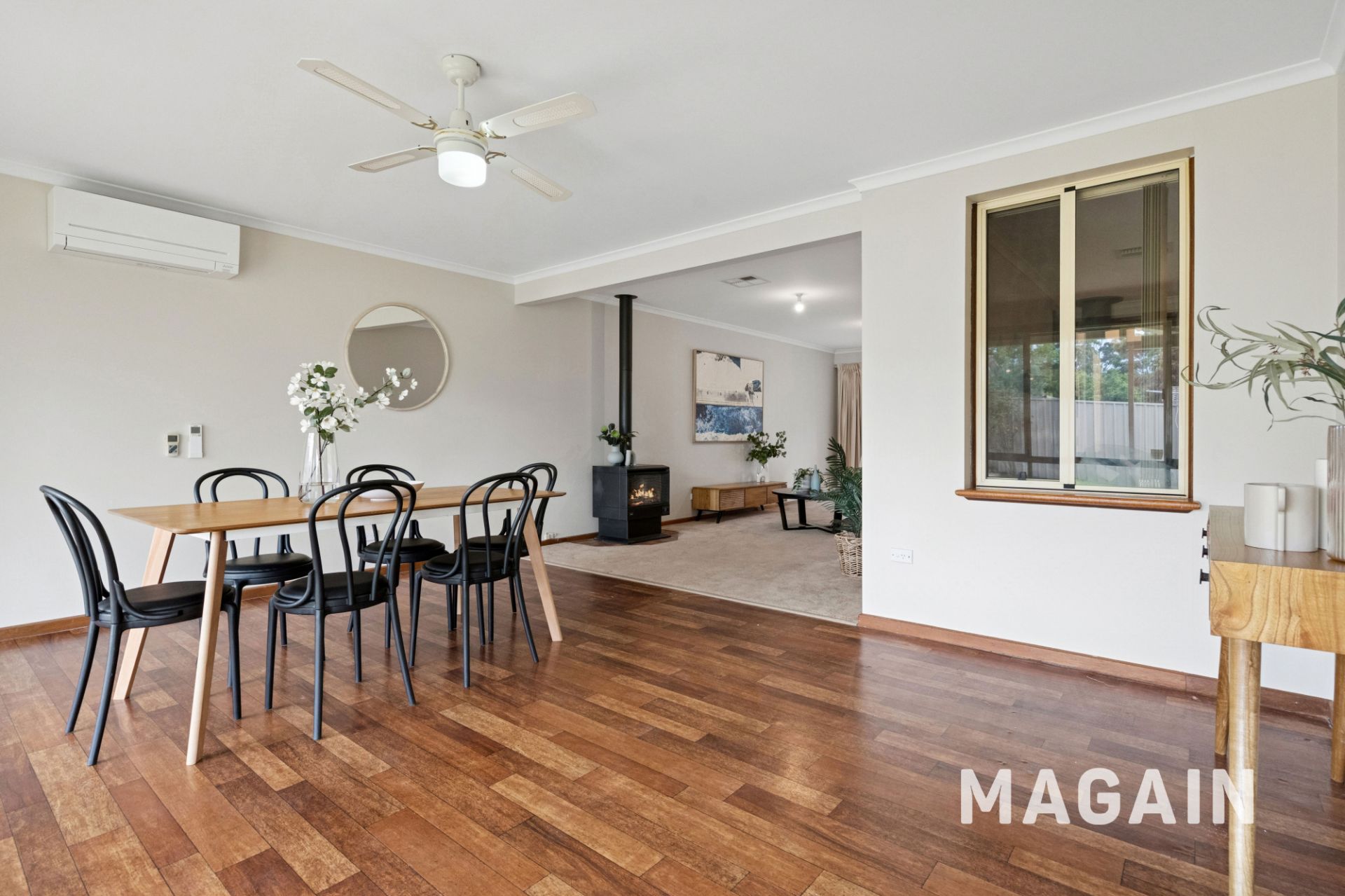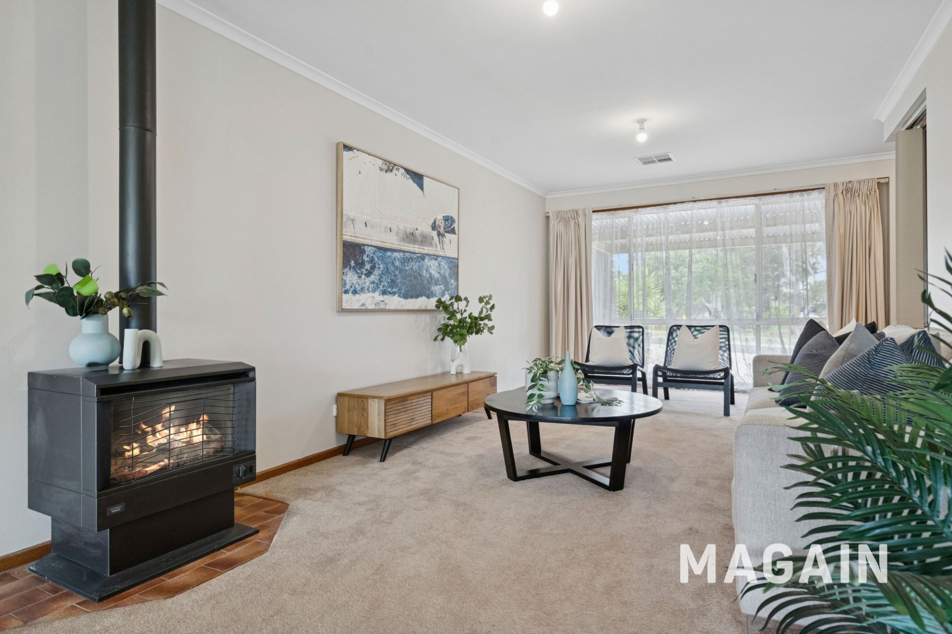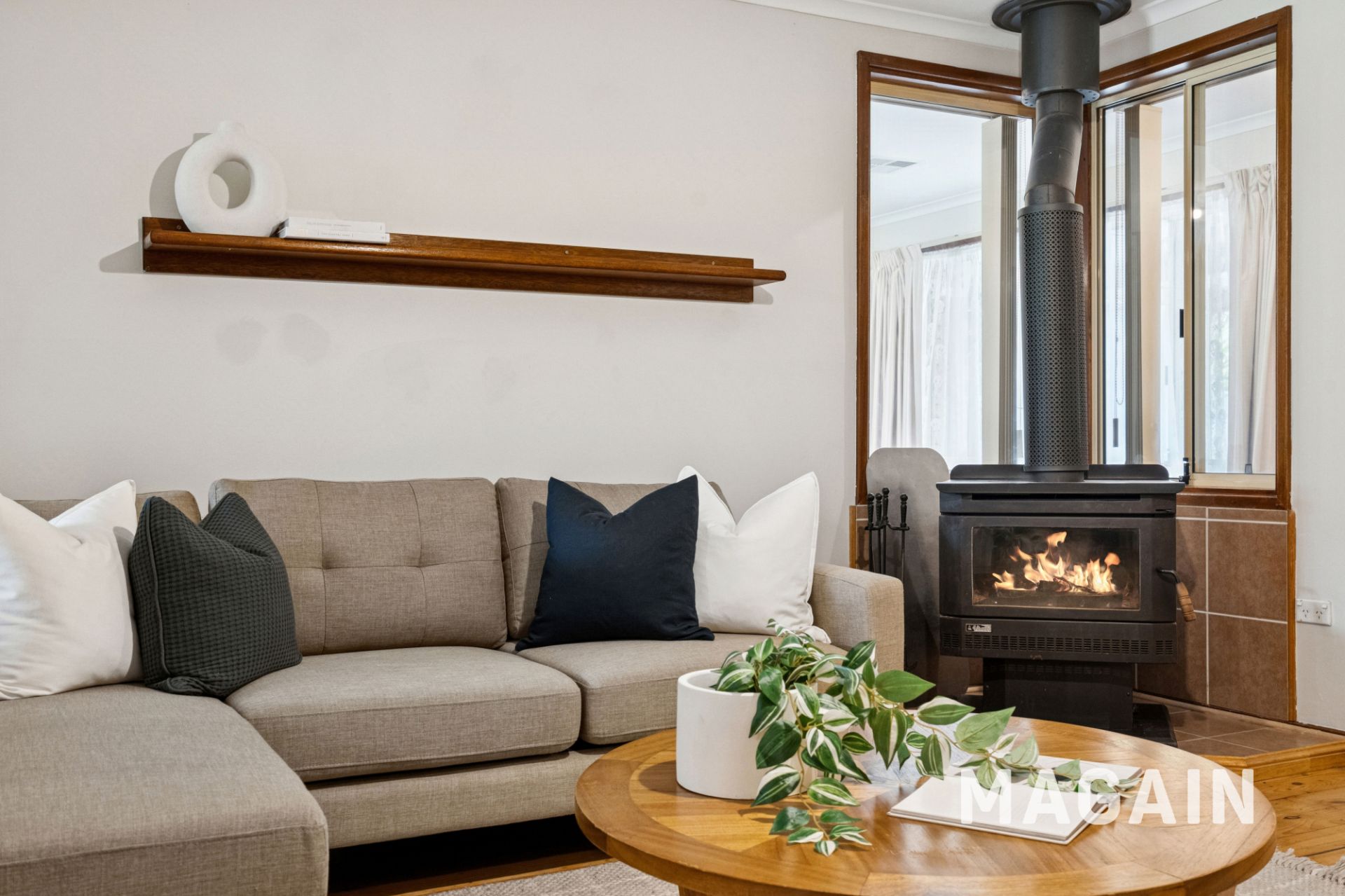 Stepping inside, you are greeted by a warm and inviting interior featuring stylish timber floors, ducted reverse cycle air conditioning and a choice of heating options including a gas combustion heater, a wood fireplace in the lounge and an additional gas wall unit, ensuring year-round comfort no matter the season. The flexible layout provides multiple living zones, including a generous lounge room, a dedicated dining area, a casual meals zone and a spacious family room complete with ceiling fan and split system air conditioning. Each space is designed for effortless everyday living, entertaining and family connection.