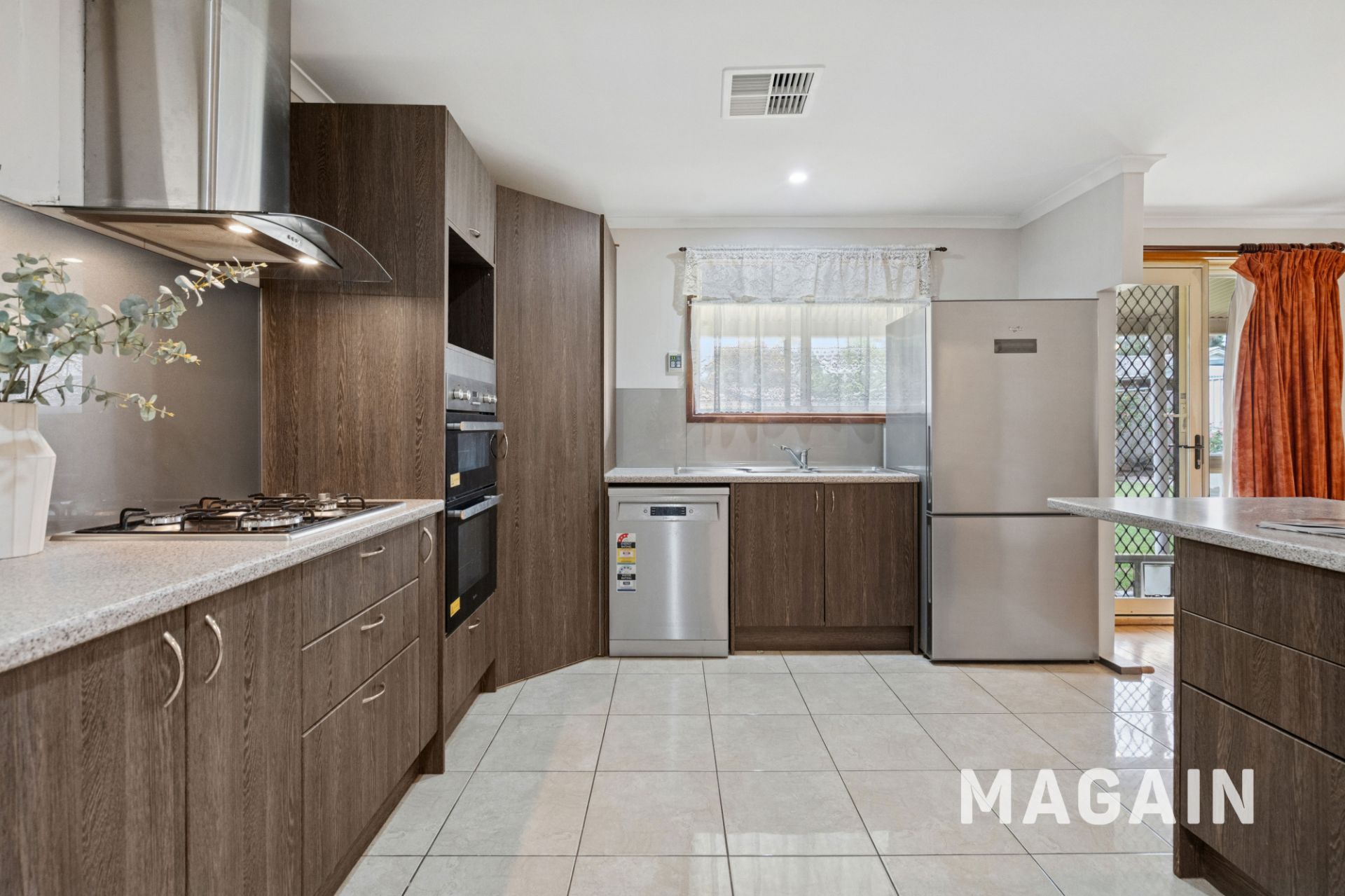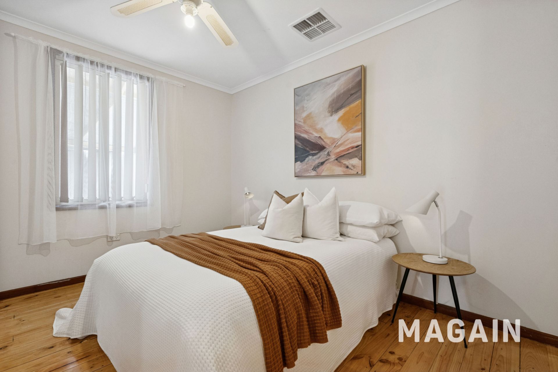 At the heart of the home, the well-appointed kitchen boasts modern stainless steel appliances including a dishwasher, gas cooktop and ample bench and cupboard space, making it perfect for the home cook. Accommodation comprises three well-sized bedrooms, each fitted with built-in robes and ceiling fans, providing ample storage and comfort for the whole family. Thoughtful details such as two linen cupboards and gas climate control hot water add further practicality to the home.