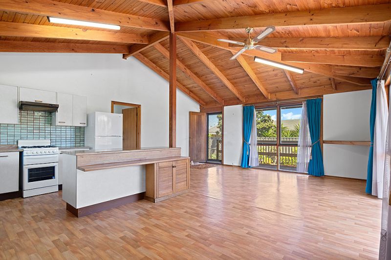 Located less than 300m from South Australia's stunning Moana Beach, this delightful timber home exudes character & charm, this is only enhanced by the large wrap around raised deck - the perfect spot to sit back, relax and enjoy the peaceful surrounds. Upon entry you are greeted by a large open plan kitchen, living and meals area boasting beautiful, vaulted ceilings, together with the exposed timber beams, it makes this area feel a much more spacious area. With a lovely outlook over the front garden, it is also north facing to capture the winter sun and the large picture windows let in all the natural light. The functional kitchen is quite quirky and features a gas oven & cooktop, dishwasher, ample cupboard storage and plenty of bench space including the island bench that creates a gathering space for your family or guests when you're entertaining while also allowing for maximum storage. Found just off the main living area, down a separate hallway is where you will find the three bedrooms, two have ceiling fans and all are serviced by the centrally located main bathroom with the convenience of a separate toilet. Valued extras include a reverse cycle split system air conditioner & ceiling fan in the living area, carpet in all bedrooms & easy-care lino flooring in the open plan area plus NBN has been connected to the home.