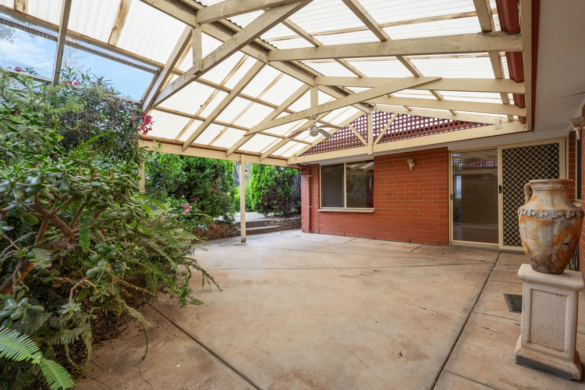 > large undercover entertaining area, with a perfect view to the adjacent vineyards.