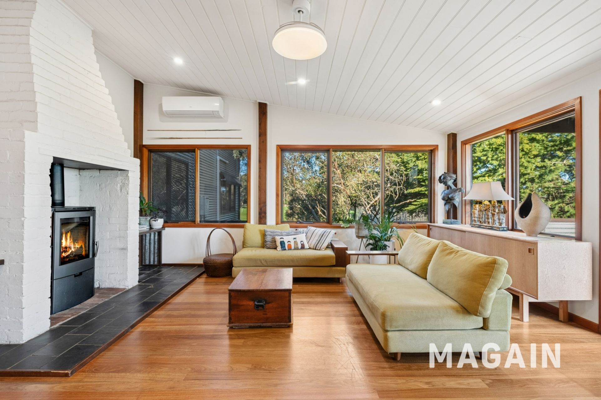 This space runs on rain water, a separate metre box, and also has a split system for heating and cooling.