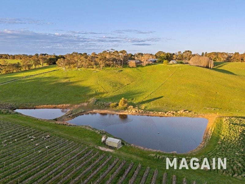 Beyond the homestead and accommodation, the property offers exceptional agricultural infrastructure with both a productive vineyard and extensive farming facilities. The vineyard, established in 1998, spans 5.5 hectares (14 acres) and is planted with four premium white wine varieties. The vineyard is highly regarded, with fruit sold to long-term premium buyers including Coriole, Jericho Wines, and Aphelion Wines. Efficiency and sustainability underpin operations, with under-vine drip irrigation supplied from a 7.3ML vineyard dam. Perimeter fencing secures the vineyard from livestock while allowing sheep grazing during winter months. Complementing the vineyard is the broader farm, comprising well-fenced paddocks currently used for cattle agistment, including two paddocks dedicated to silage production. The land has previously supported cattle and horses, although it was originally established as an orchard in the early 1900s, demonstrating its versatility. Water security is provided by four livestock dams. Infrastructure includes a five-bay farm shed of approximately 90 square metres with power, lighting, and a secure workshop, while a six-bay shed of around 160 square metres sits close by.