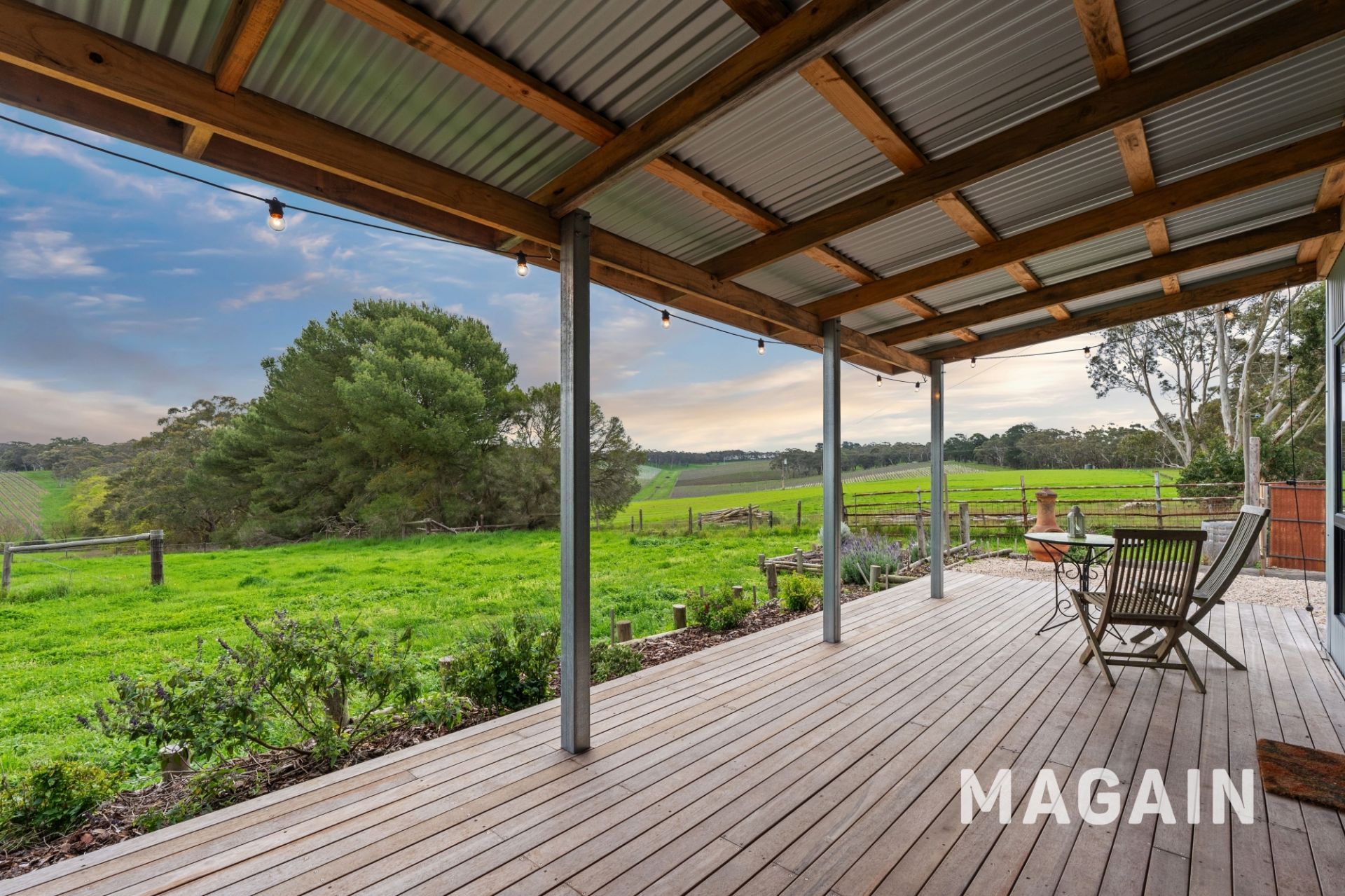 Tregarthen means 'house in the garden' and this truly is it. Situated in the blue chip acreage suburb of 'The Range', this 111 acres (approx.) of prime land contains two impressively renovated dwellings, a stylish studio/event space, extensive shedding and a workshop. The land offers a variety of uses for primary production and tourism or you can simply relax and look over stunning views over rolling hills far into the distance of the Fleurieu Peninsula. A tree-lined driveway welcomes you, overlooking lush green paddocks that are currently home to four alpacas and a small dam.
