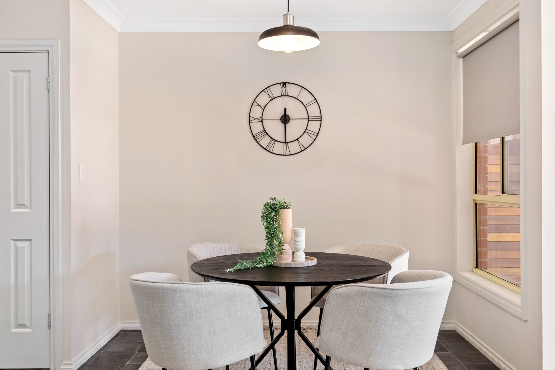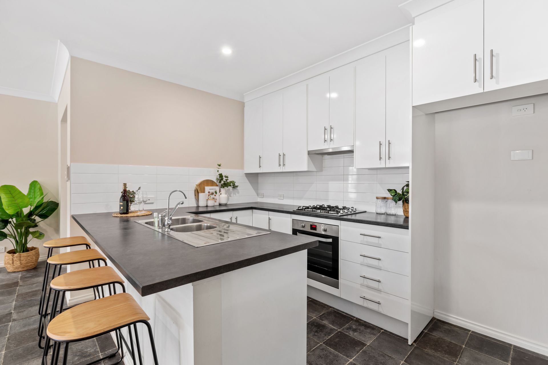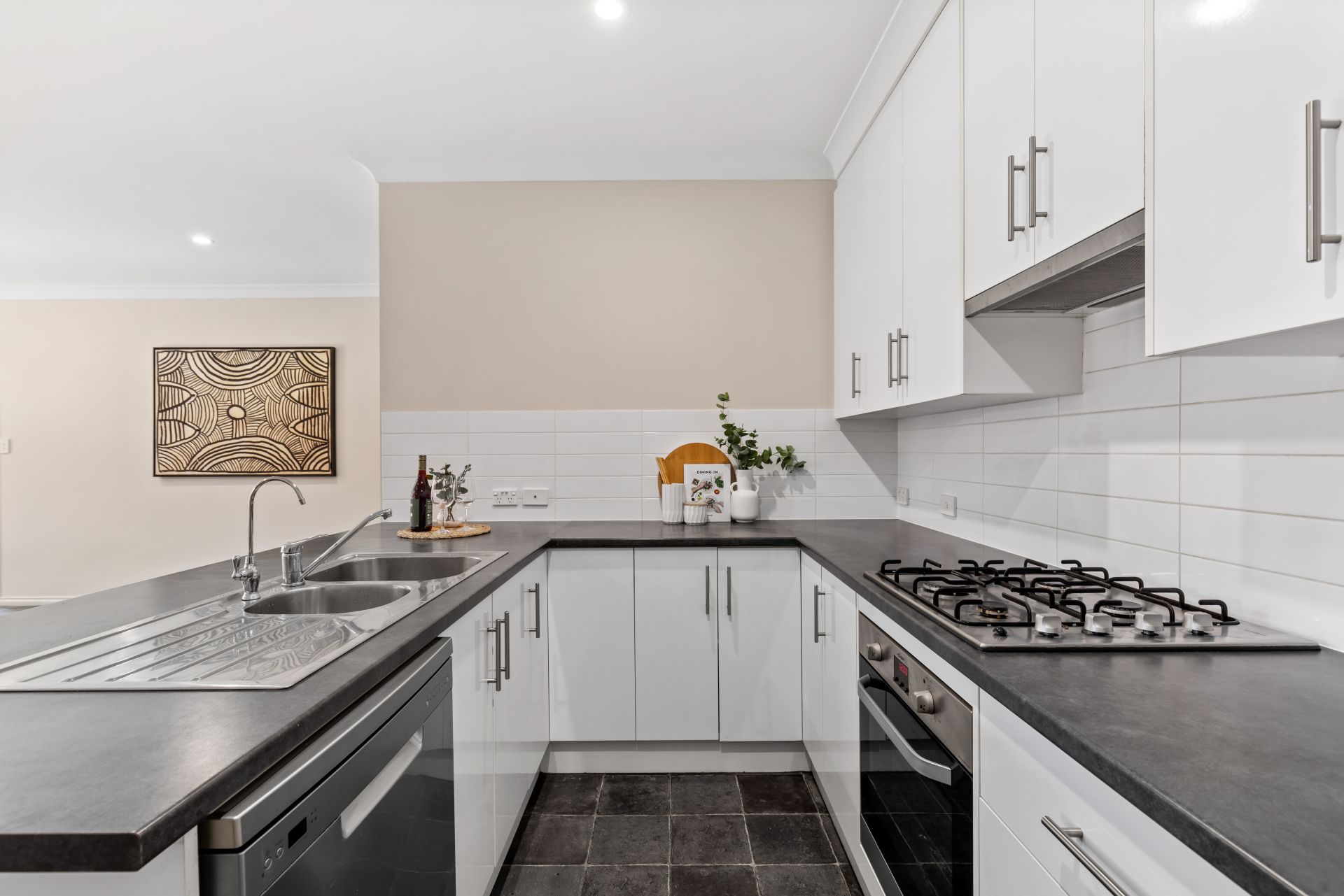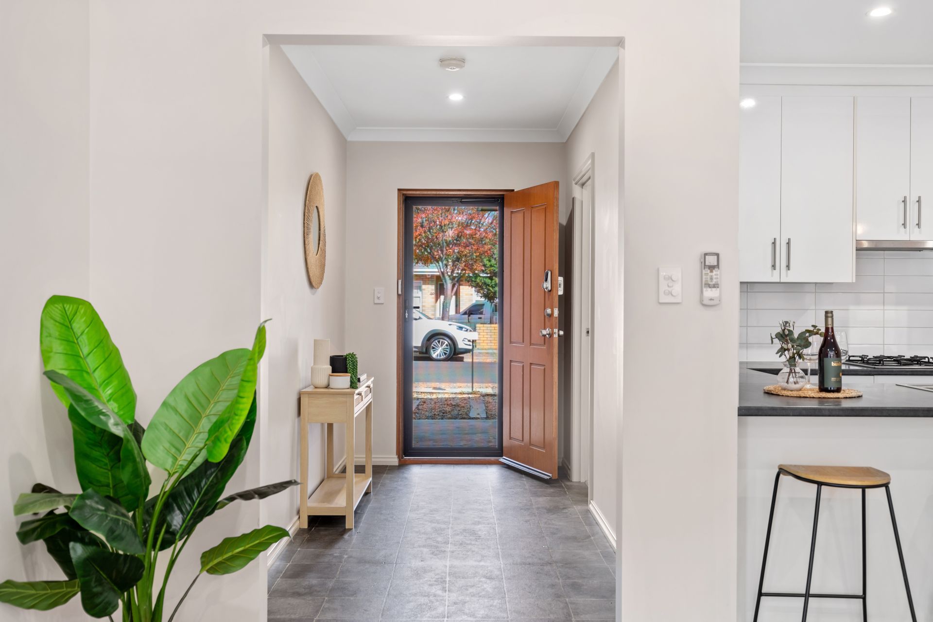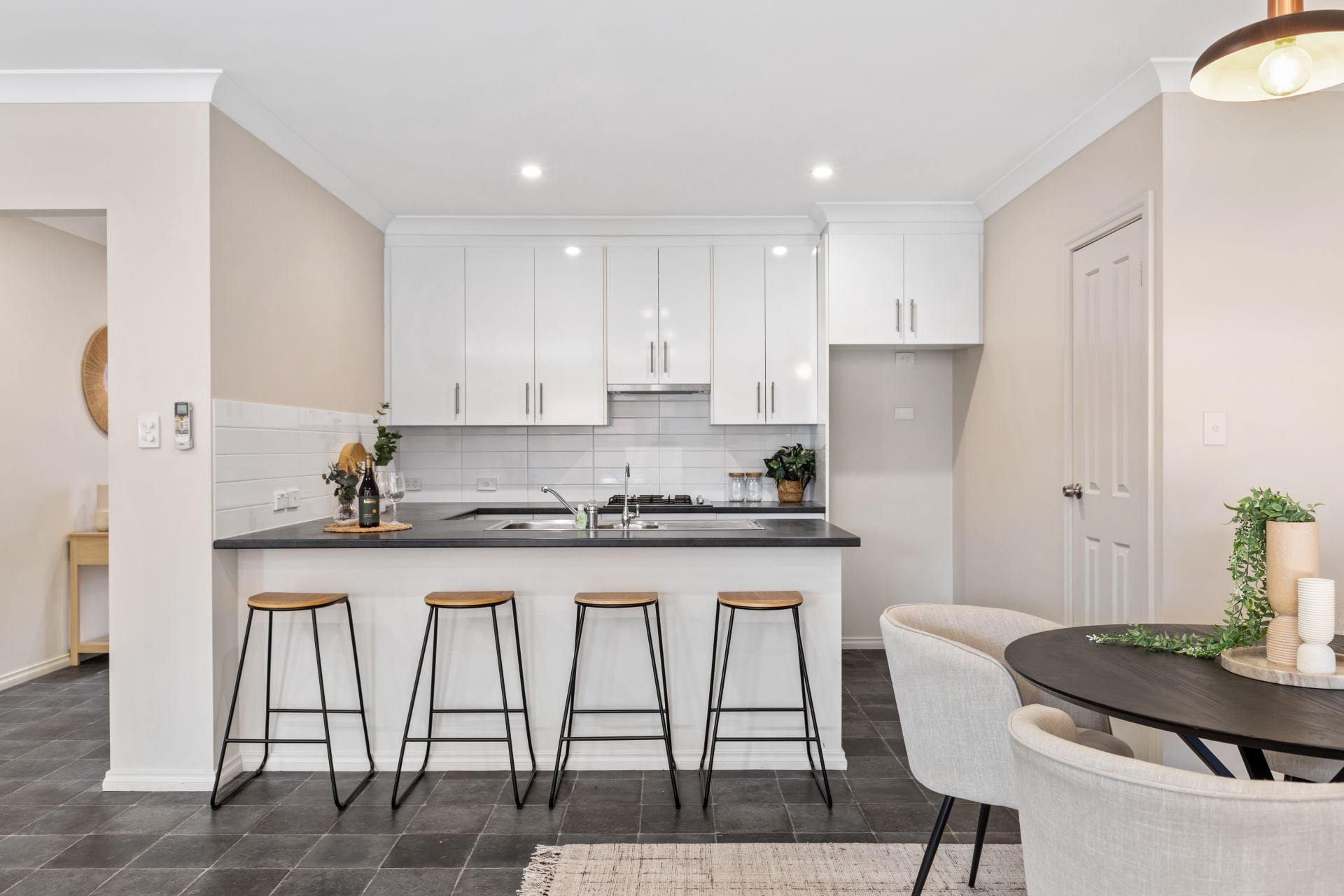 - Tiled open plan living.