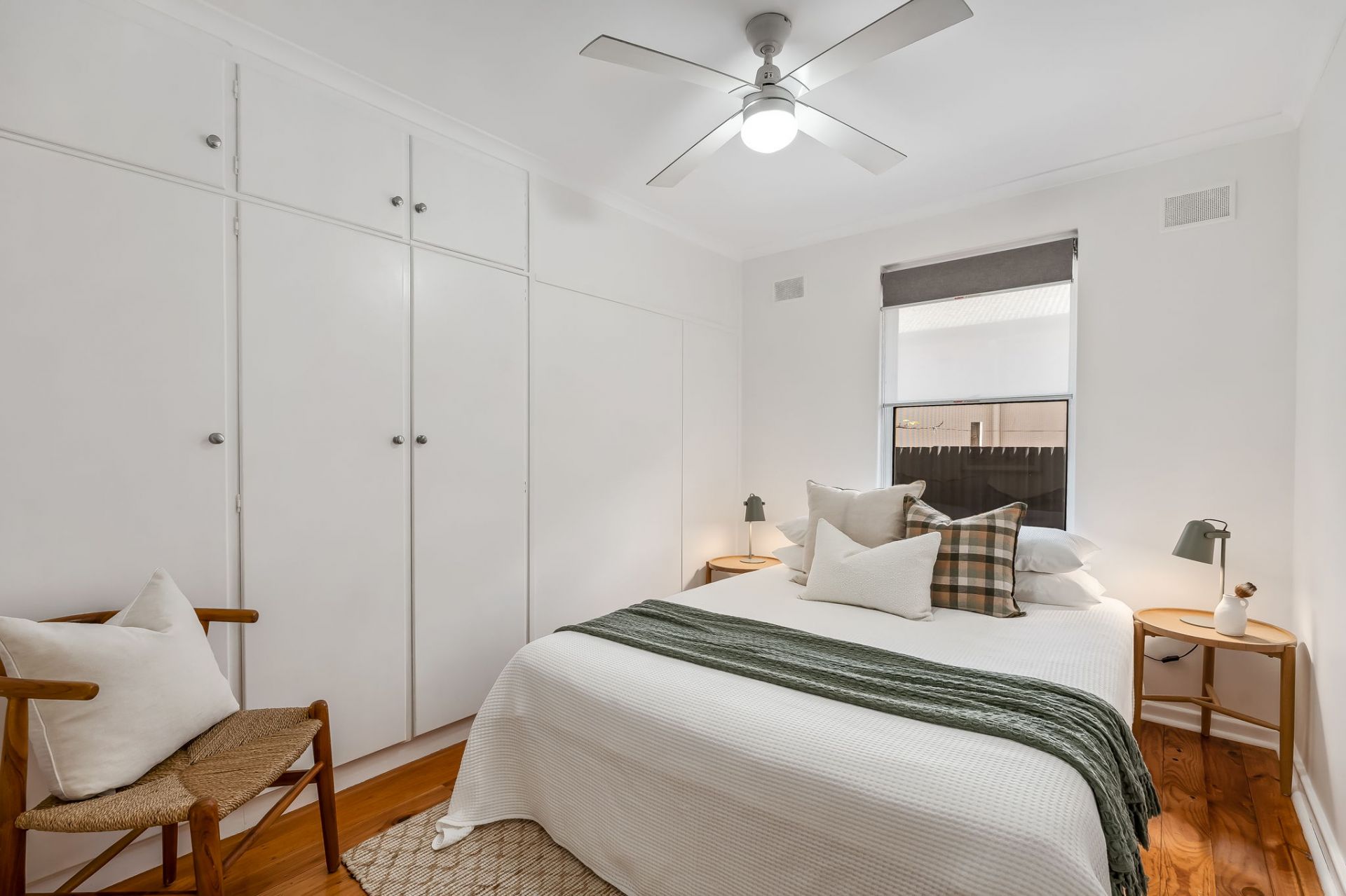 > Bedroom 1 with built in robe, ensuite and ceiling fan