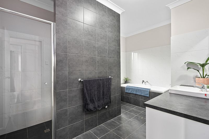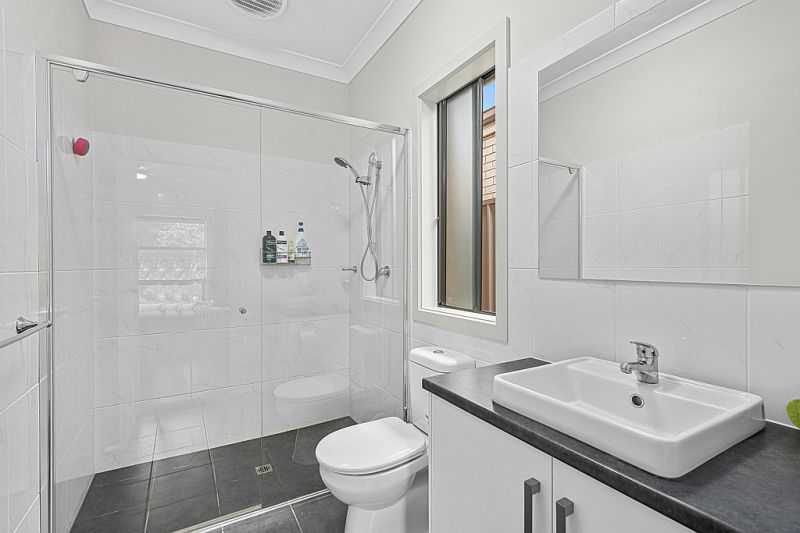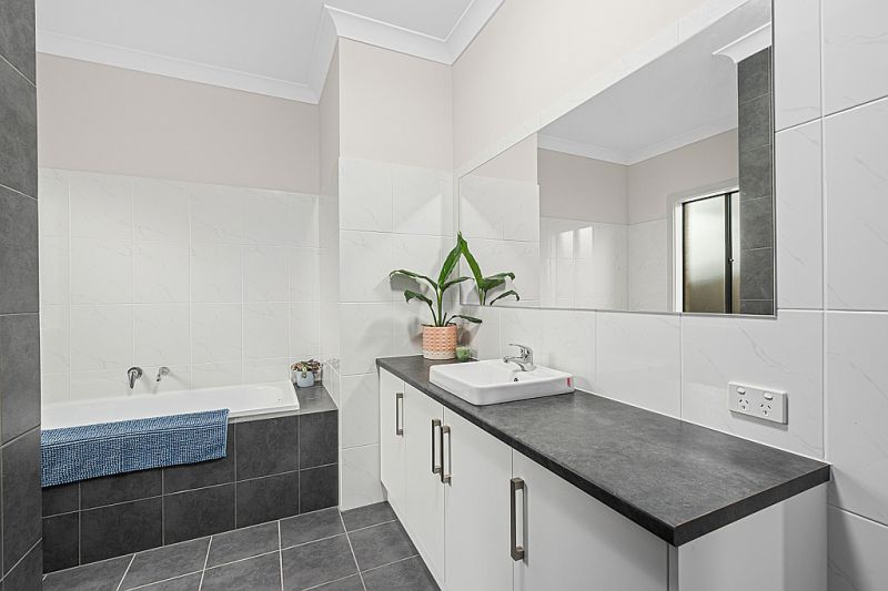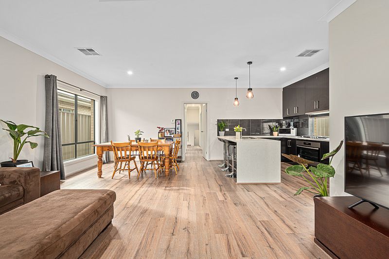 Step inside this impeccable property and discover the entrance hallway with floating timber floors and 2.7m ceilings overhead. The master bedroom is located just off the hallway and features a ceiling fan, day/night-time blinds for privacy, walk-in robe and an ensuite bathroom with a luxurious double length shower. Bedrooms two and three are fitted with built-in robes and both are close to the main bathroom, while all bedrooms have carpet. Centrally located, the family bathroom is spacious and well designed, offering a large vanity with plenty of bench & storage space, a bathtub, a separate shower and a cleverly concealed toilet. Open plan living blends beautifully with outdoor entertaining while the spacious modern kitchen will inspire creativity. The impressive chef's kitchen has been designed as an integral hub for family life and is well appointed with stainless steel appliances including a 900mm gas cooktop, 900mm electric oven and dishwasher. Not only is there plenty of cupboard and bench space including the breakfast bar, but you'll also love the large walk-in pantry and stylish pendant lighting. Invaluable to a modern family lifestyle is a second living area, this versatile room is tucked away from the main area, offering easy care floating timber floors and a glass sliding door to a private courtyard. Other features include ducted & zoned reverse cycle air conditioning throughout, a contemporary laundry with ample bench space, a large linen cupboard and sliding door access to the outside.
