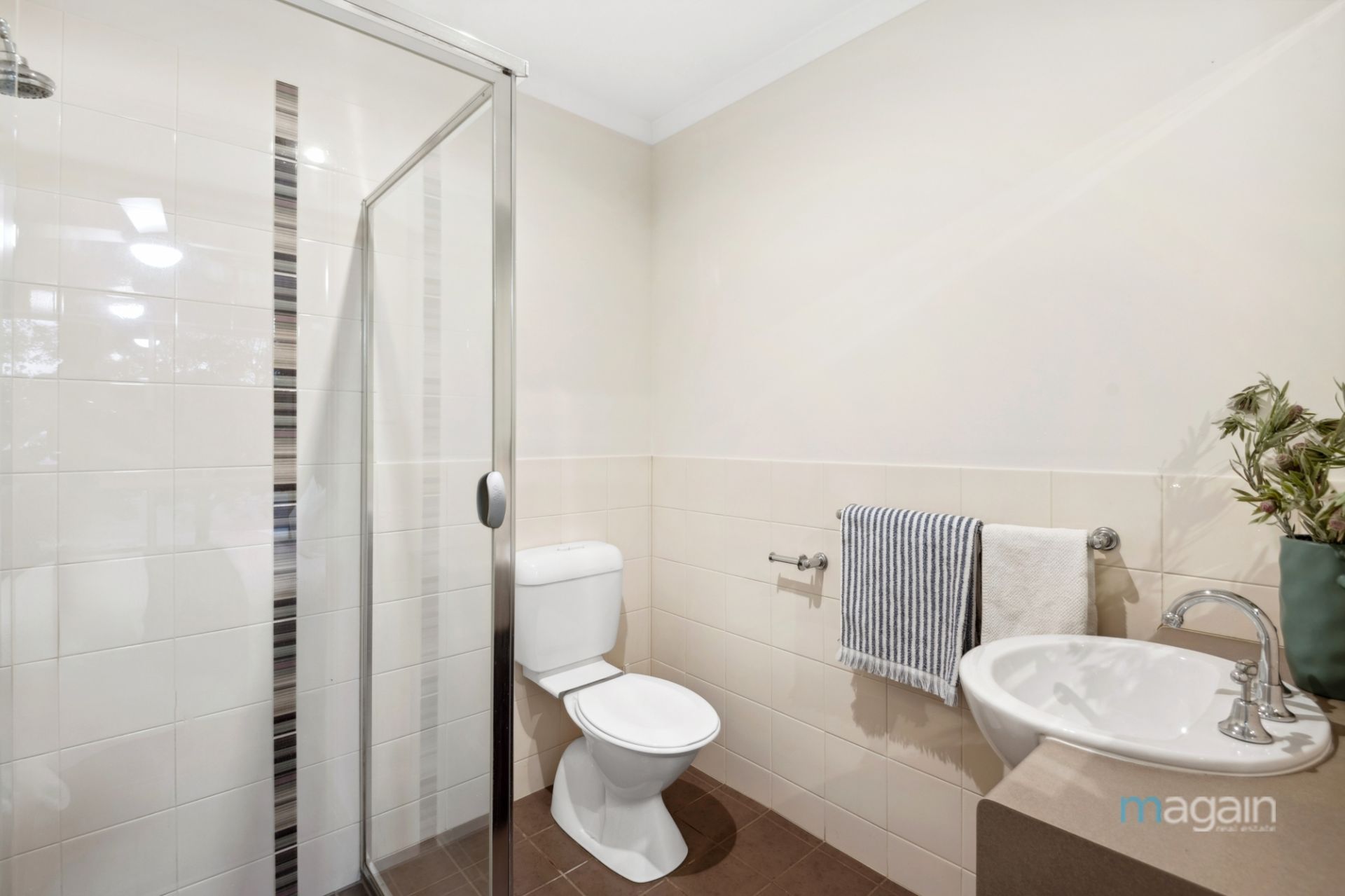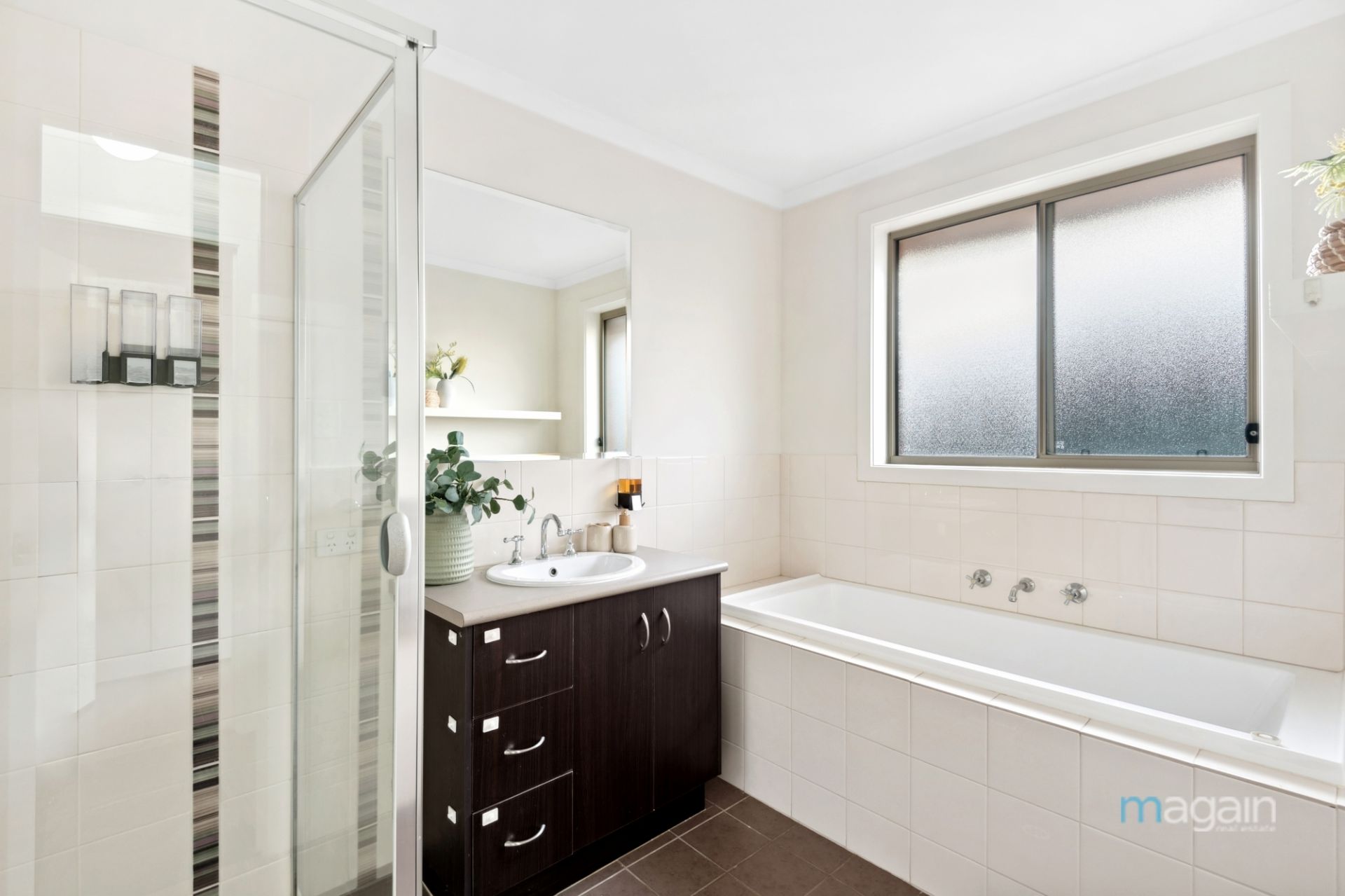 The central family bathroom is well-equipped with a bathtub, ideal for unwinding after a long day, and a separate toilet for added convenience. Practicality is key, with a well-appointed laundry that includes built-in linen storage, ensuring all your essentials are neatly organised.