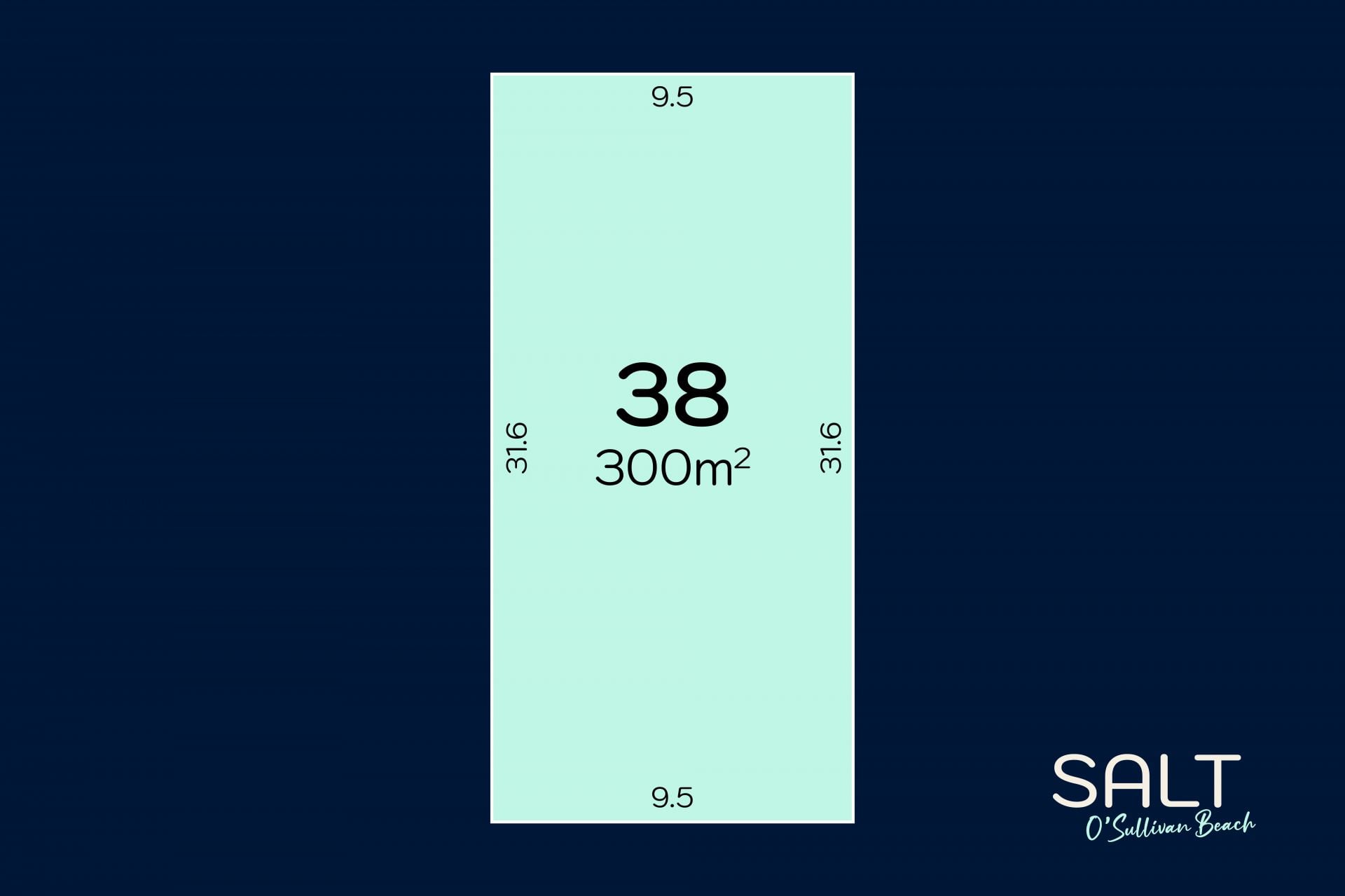 Don't miss this exclusive opportunity to secure Lot 38, a 300sqm block in the highly sought-after Salt O'Sullivan Beach community. With a 9.5m frontage and 31.6m depth, this lot provides the perfect space to design a stunning coastal home with modern living in mind.