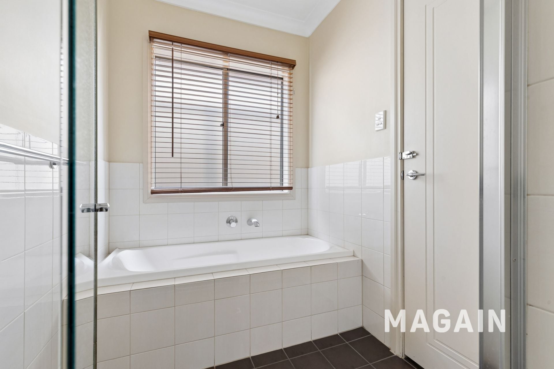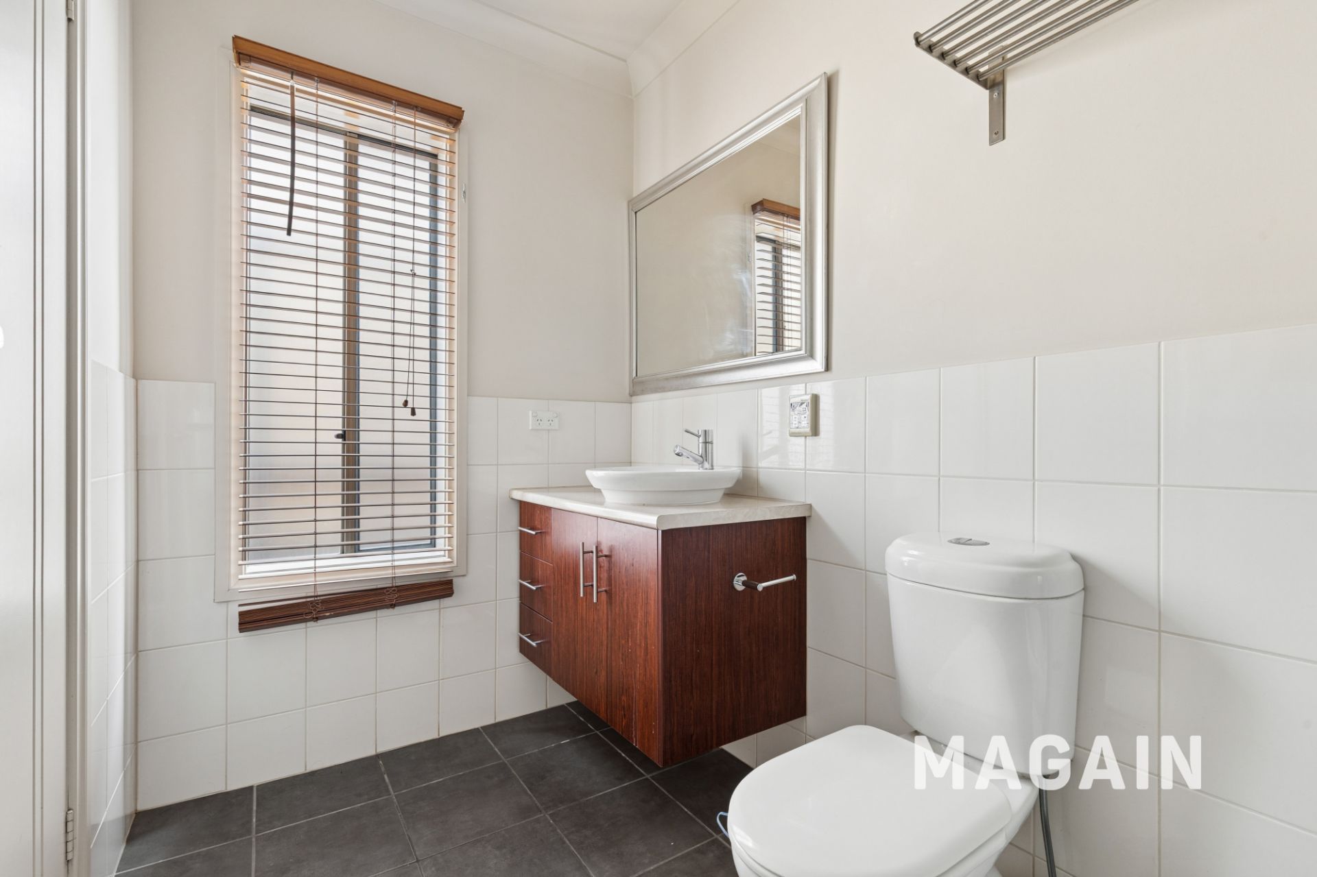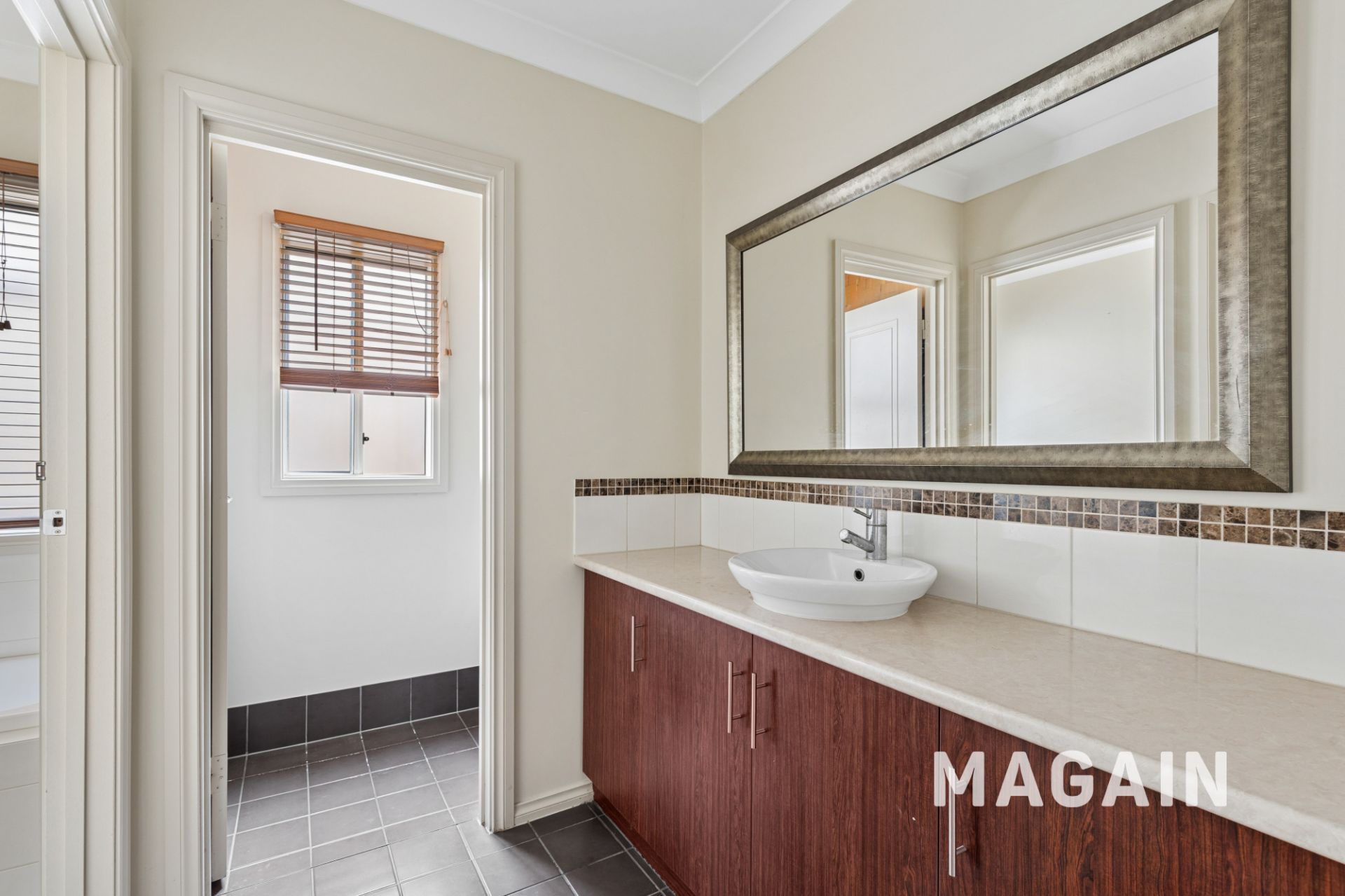 > Neat and airy bathroom with separate toilet