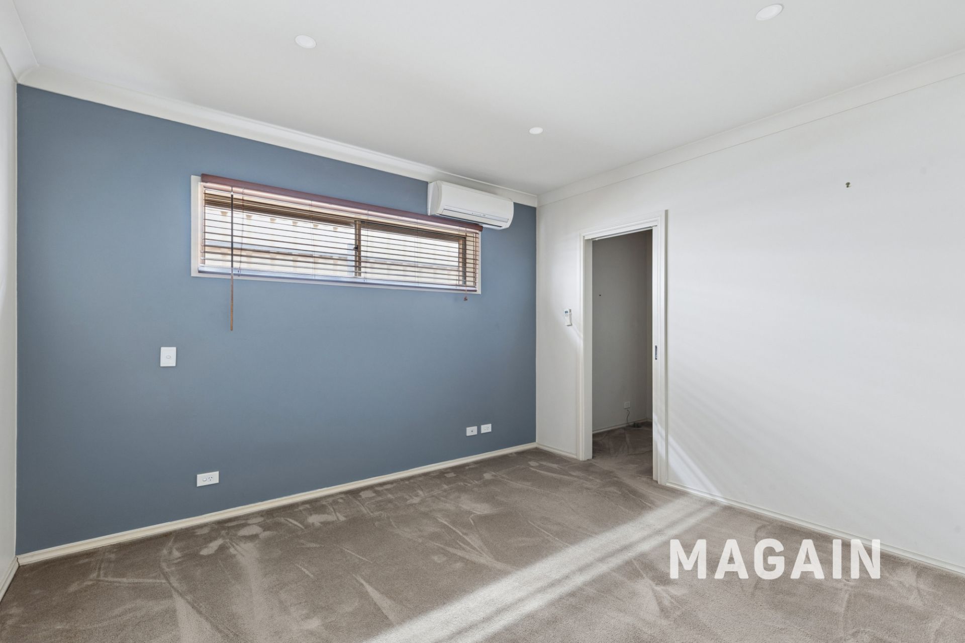 > Bedroom 1 with walk in robe, split system and ensuite