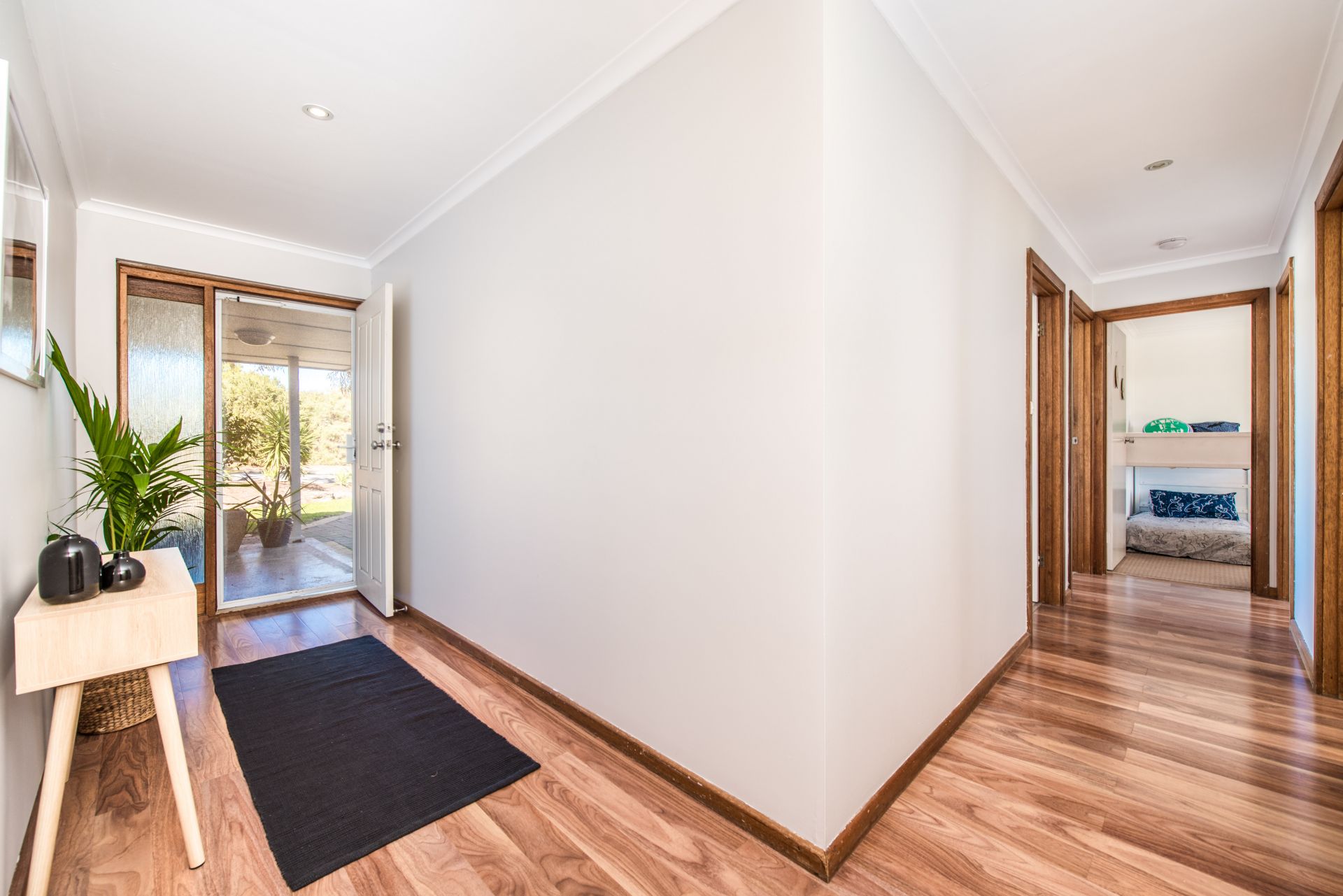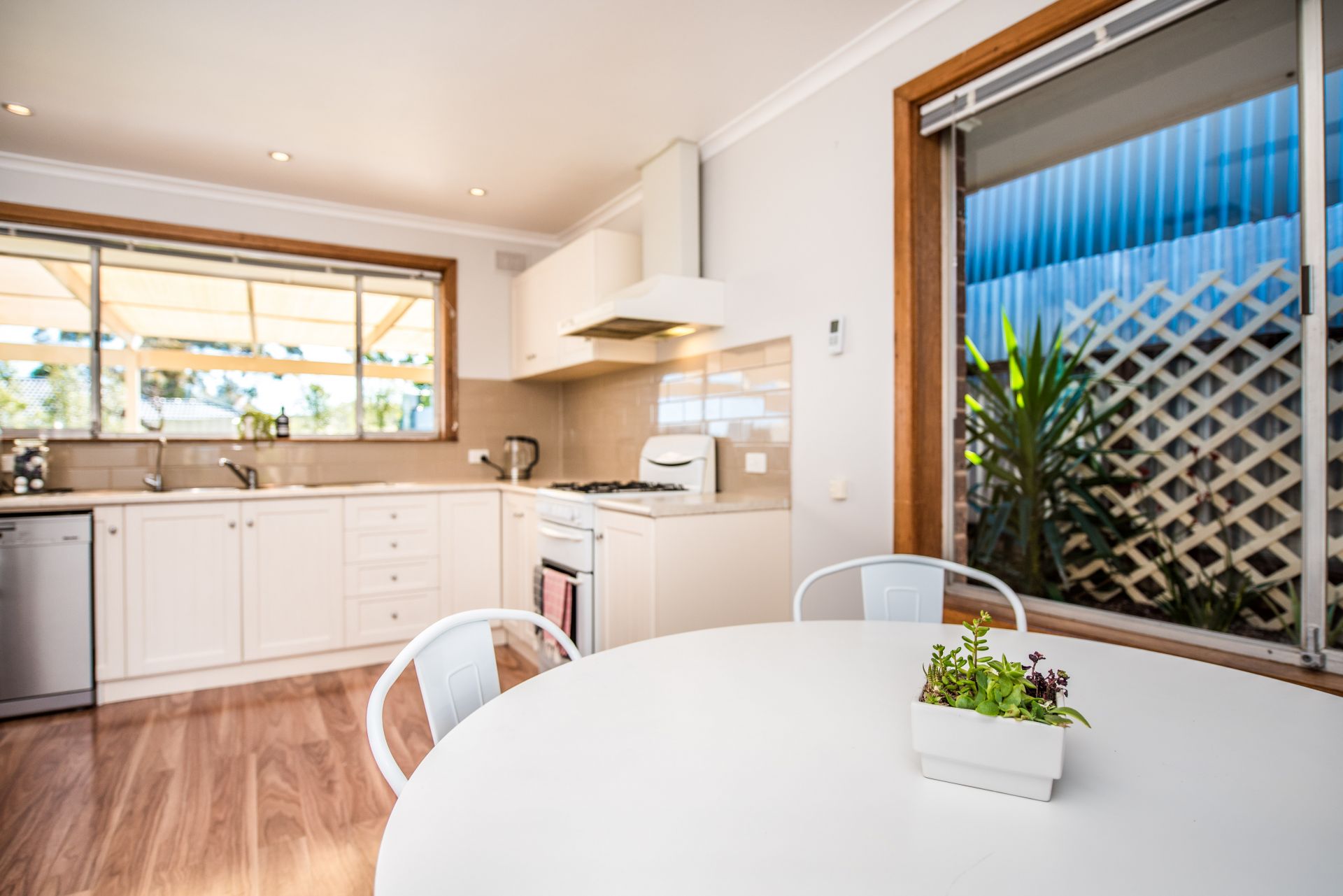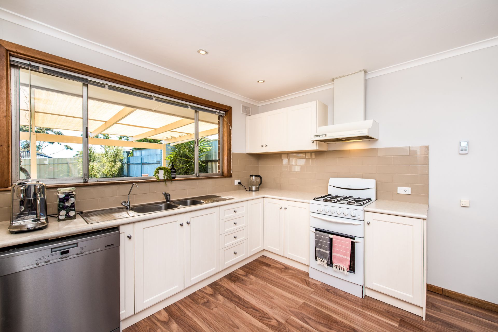 Stepping onto the property there is ample car parking space for the busy household. Moving inside and into a large entry hall are beautiful floorboards throughout. Complete with three good sized bedrooms, the master bedroom has floor to ceiling mirrored built in robes and a ceiling fan for comfort. Bedroom two and three both offer floor to ceiling built in robes and ceiling fans for temperature control on those warm summer nights. Each room has a beautiful big window allowing natural light to pour in! the abundance of natural light creates a sense of calm and serenity, sit back and enjoy nature from your very own bedroom.