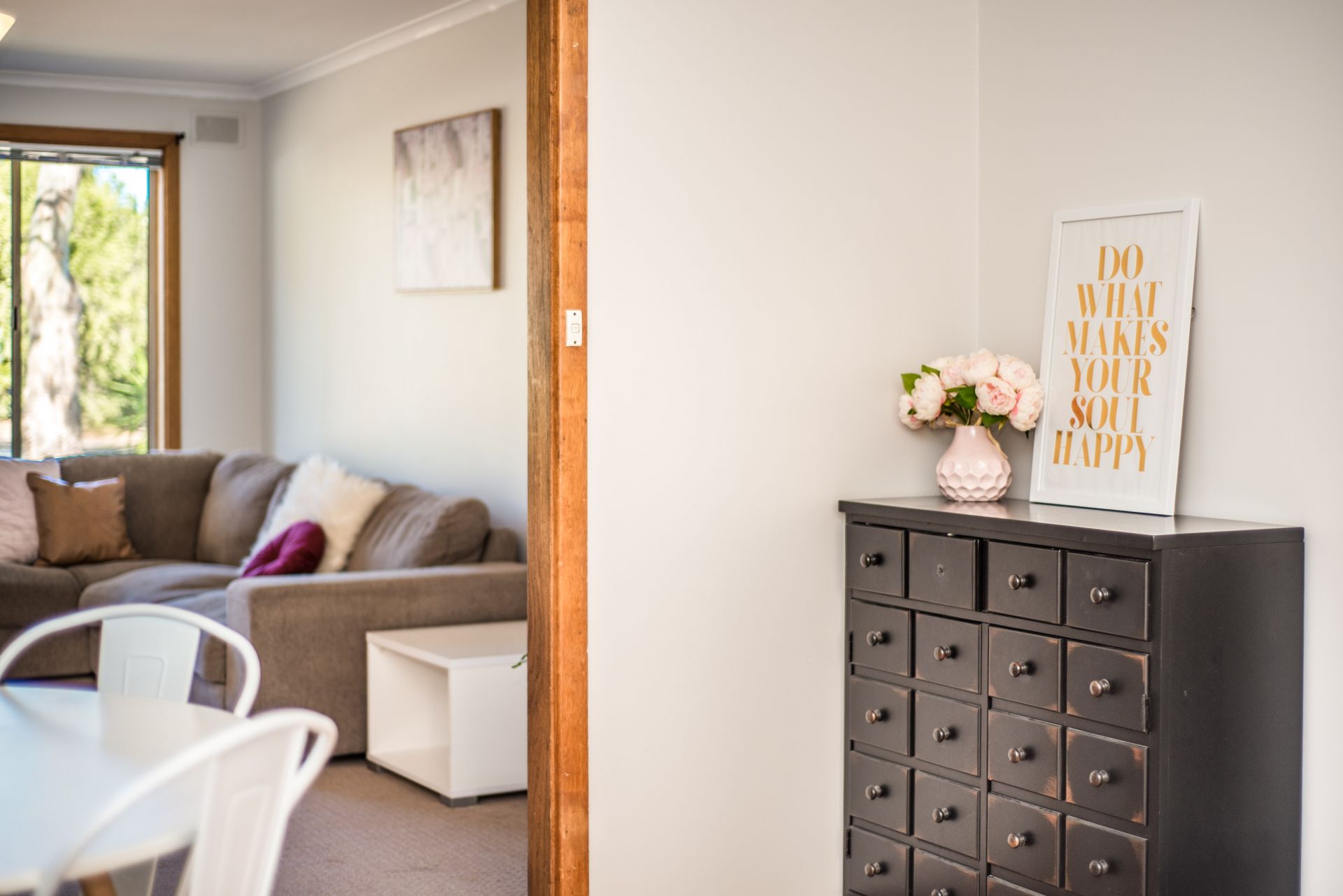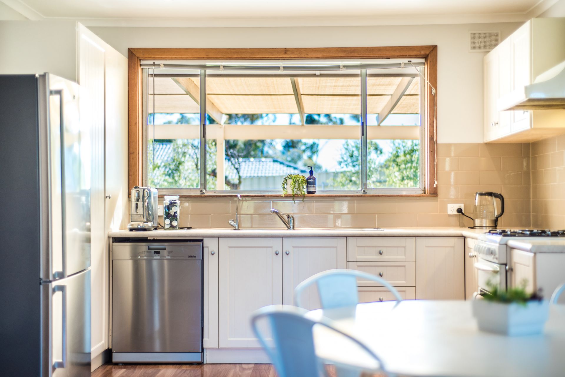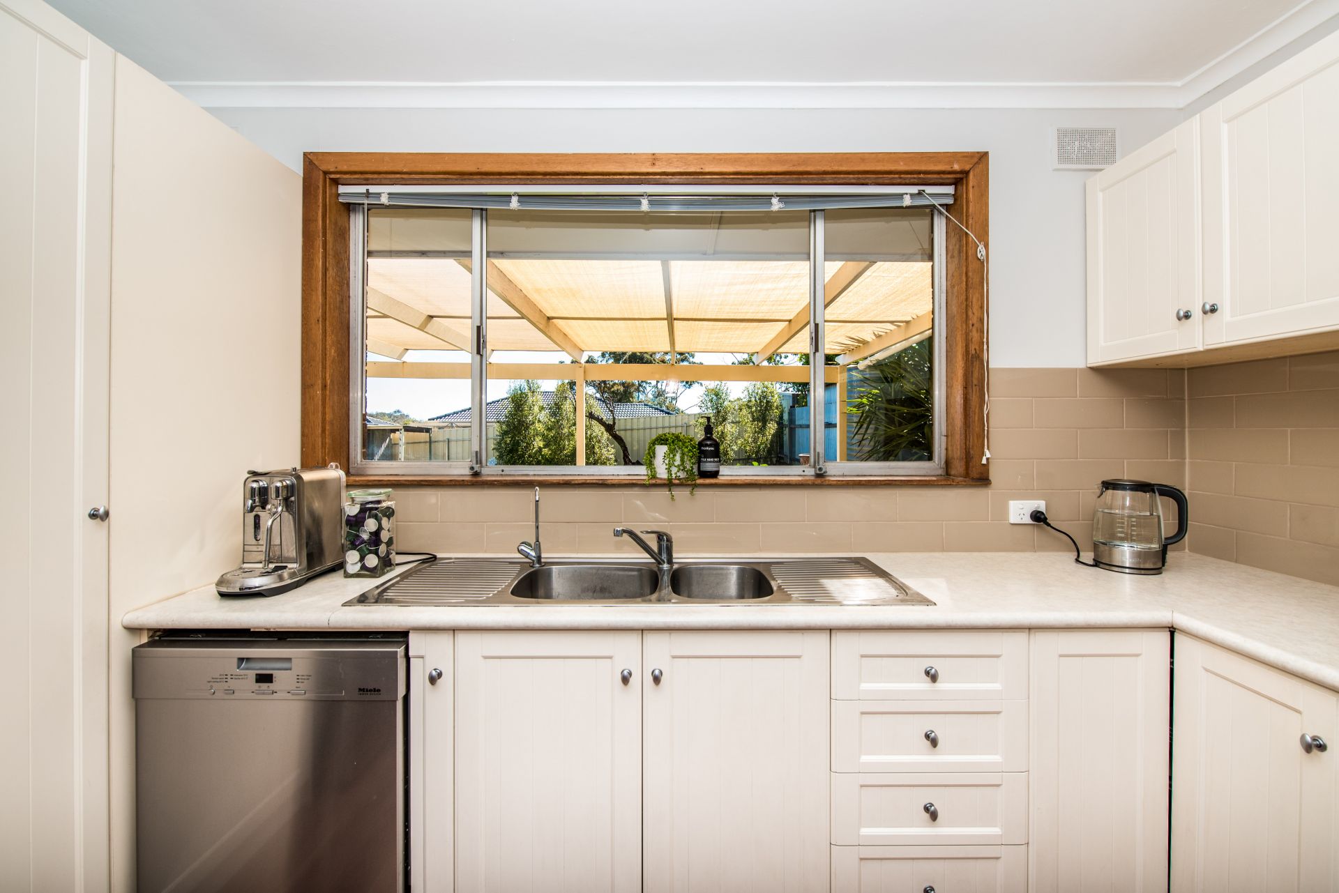 At the heart of the home is the open plan living area. Lovely mocha tones and detailed cupboards give this kitchen a real country cottage feel. Complete with gas oven, dishwasher and generous corner pantry. This kitchen overlooks the backyard giving the parents peace of mind while cooking dinner. A large lounge room at the front of the home with those gorgeous big windows and natural light provide a space for the kids to play after school and the parents to unwind after the kids have gone to bed.