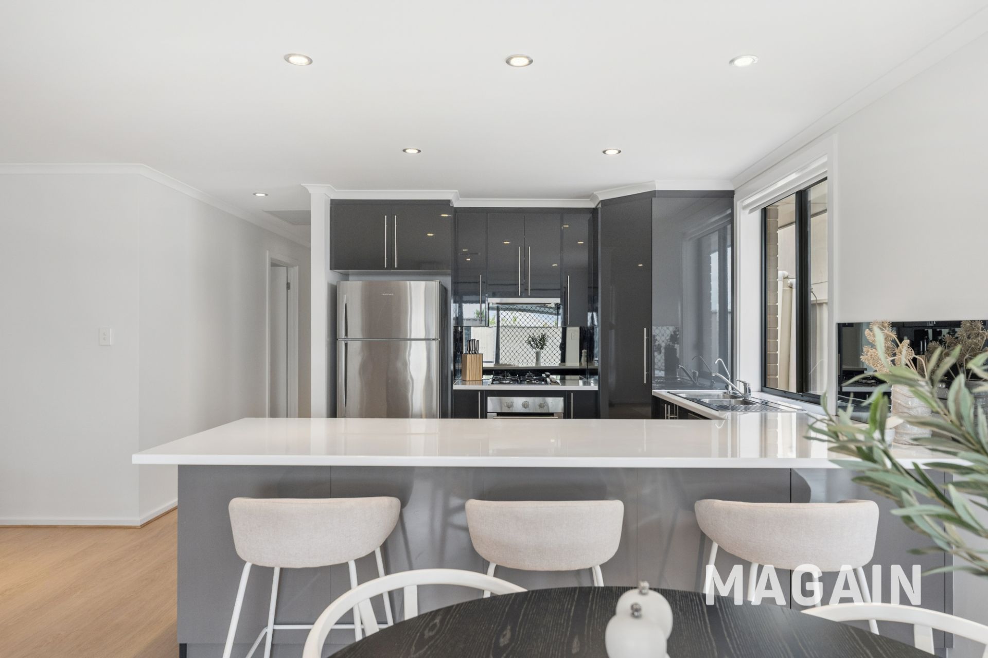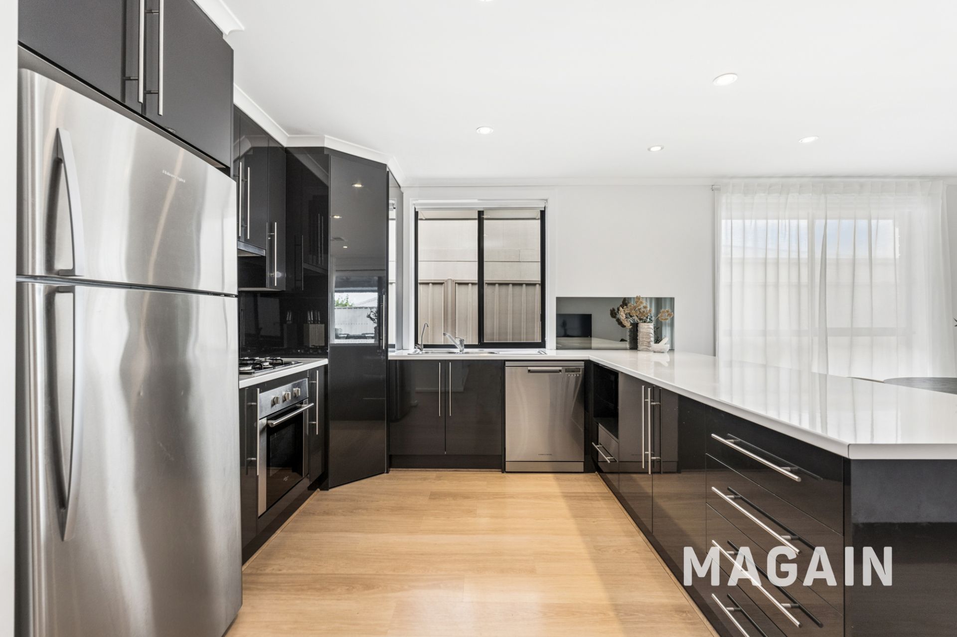 From the moment you enter, the home's elegant interiors set a tone of understated luxury. Natural light fills the open-plan spaces, enhanced by sleek finishes, soft neutral tones, and the year-round comfort of ducted reverse-cycle air conditioning. At the centre of the home lies the beautifully appointed kitchen - a true showpiece featuring glossy cabinetry, stainless steel appliances, gas cooktop, dishwasher, and a generous breakfast bar. Overlooking the spacious dining and living zones, it forms the perfect backdrop for both intimate family meals and grand entertaining.