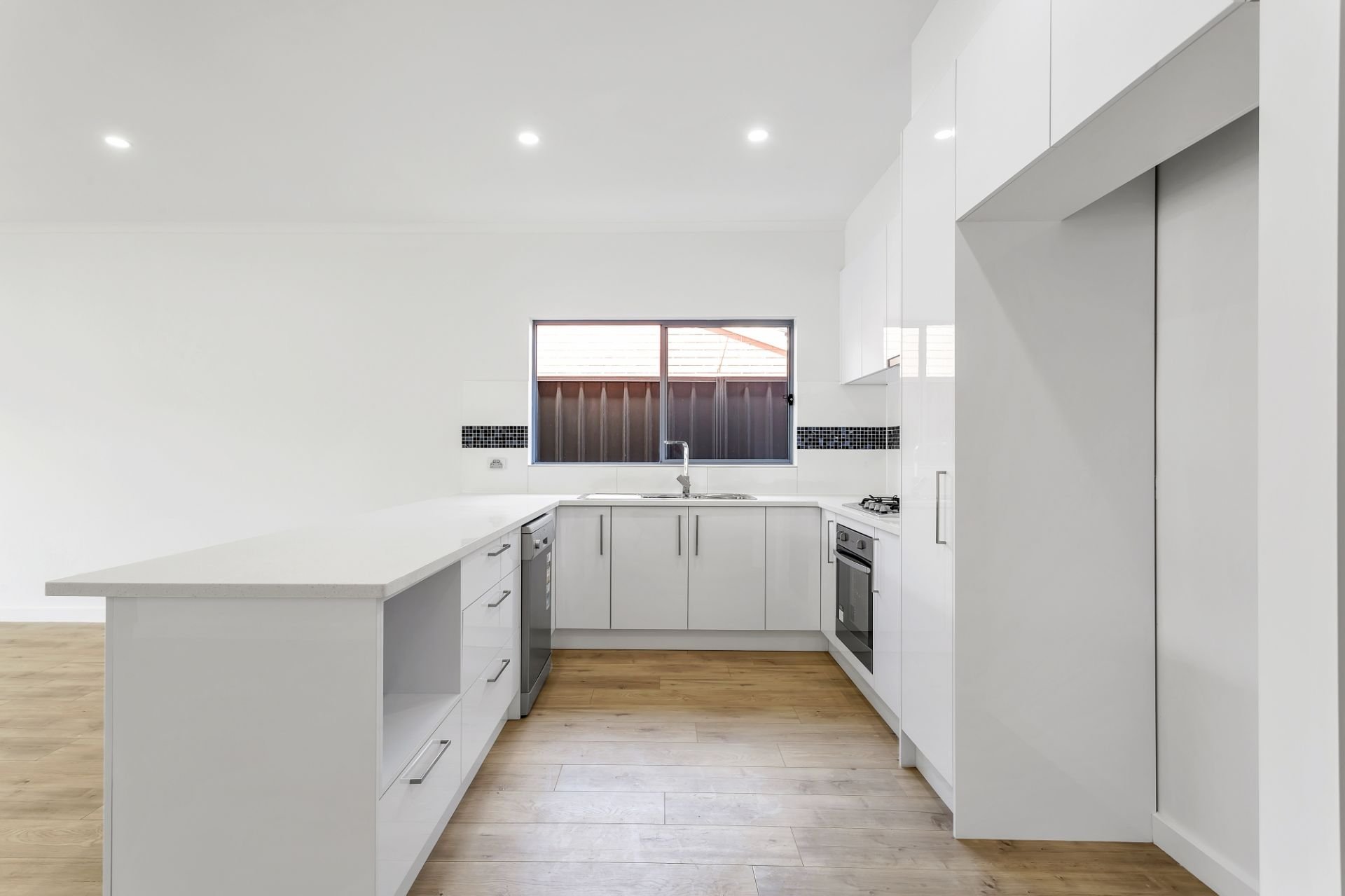 > open plan kitchen, living and dining area