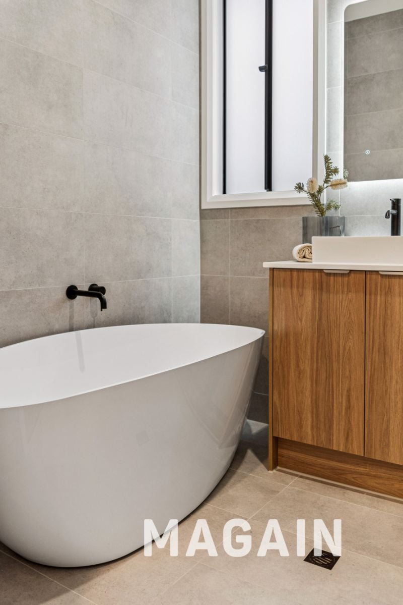 The home offers four bedrooms all with built-in robes, the master with a luxurious ensuite. The main bathroom is a serene retreat with a separate bath, a glass shower, and a sleek vanity. The laundry is practical and spacious, with plenty of storage and direct outdoor access.