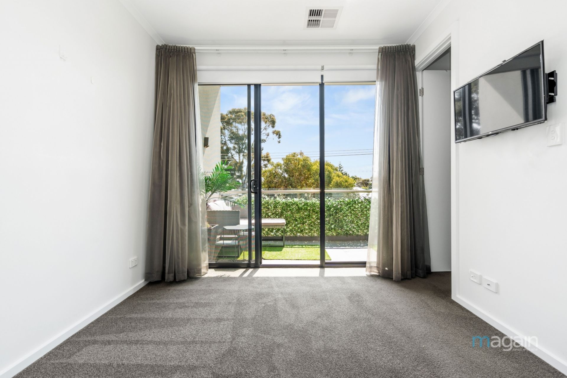 > main bedroom features walk in robe and ensuite access and balcony with outdoor furniture