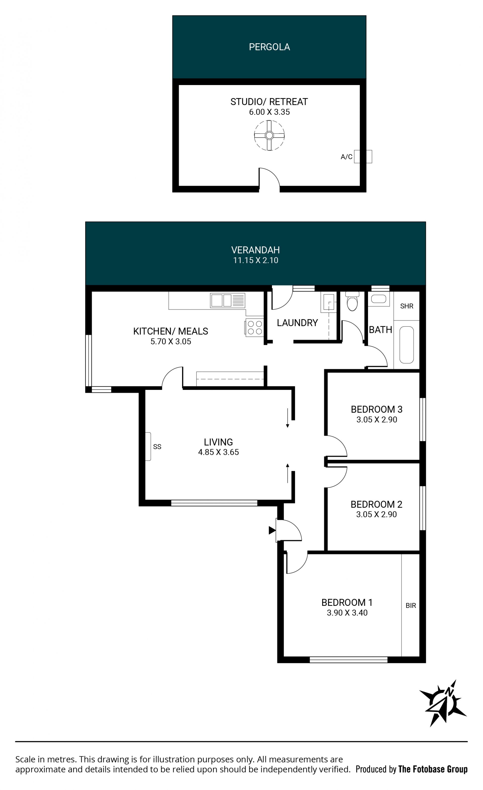Large verandah and separate pergola area