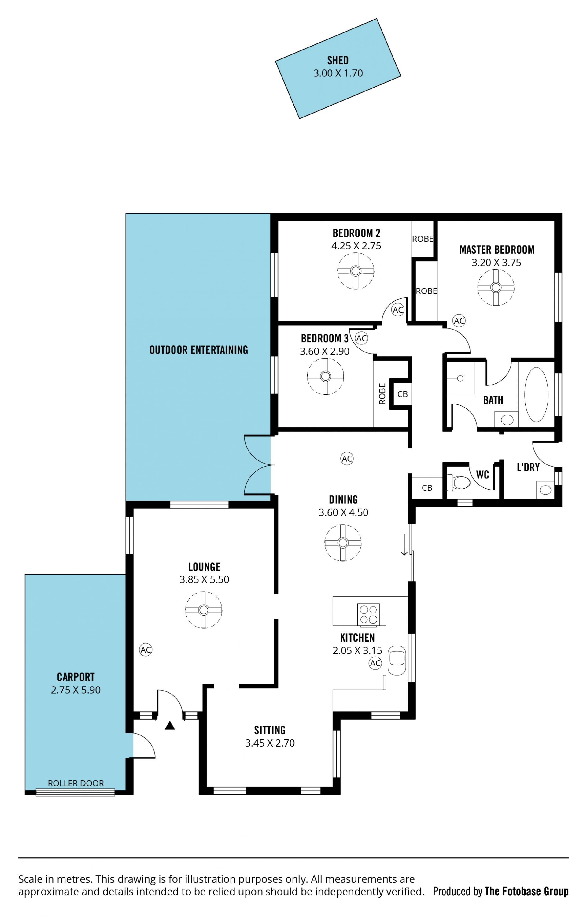 > 3 bedroom family home, master with built in robe and ceiling fan