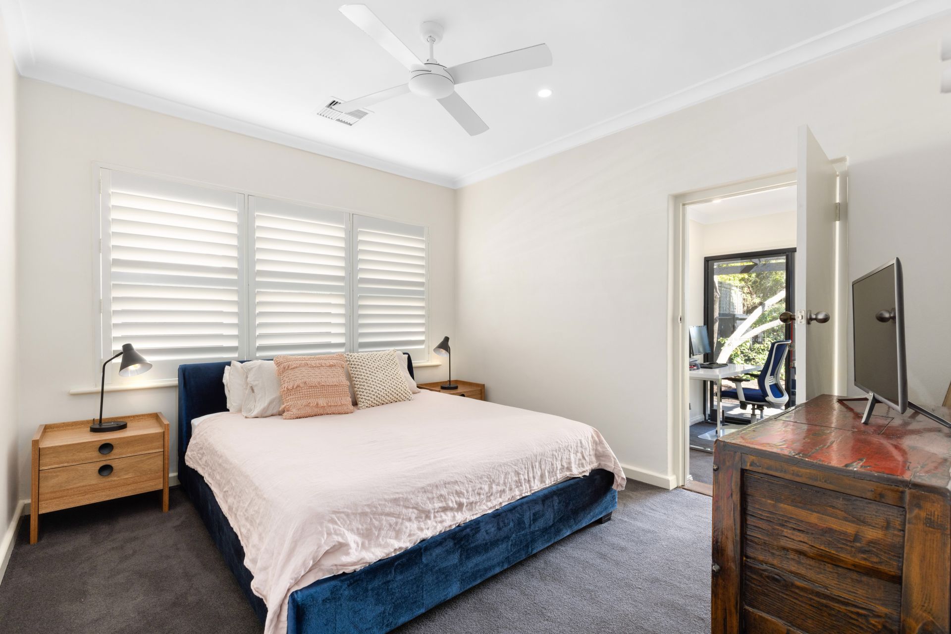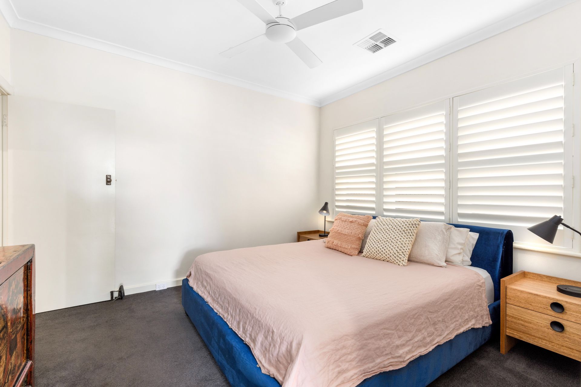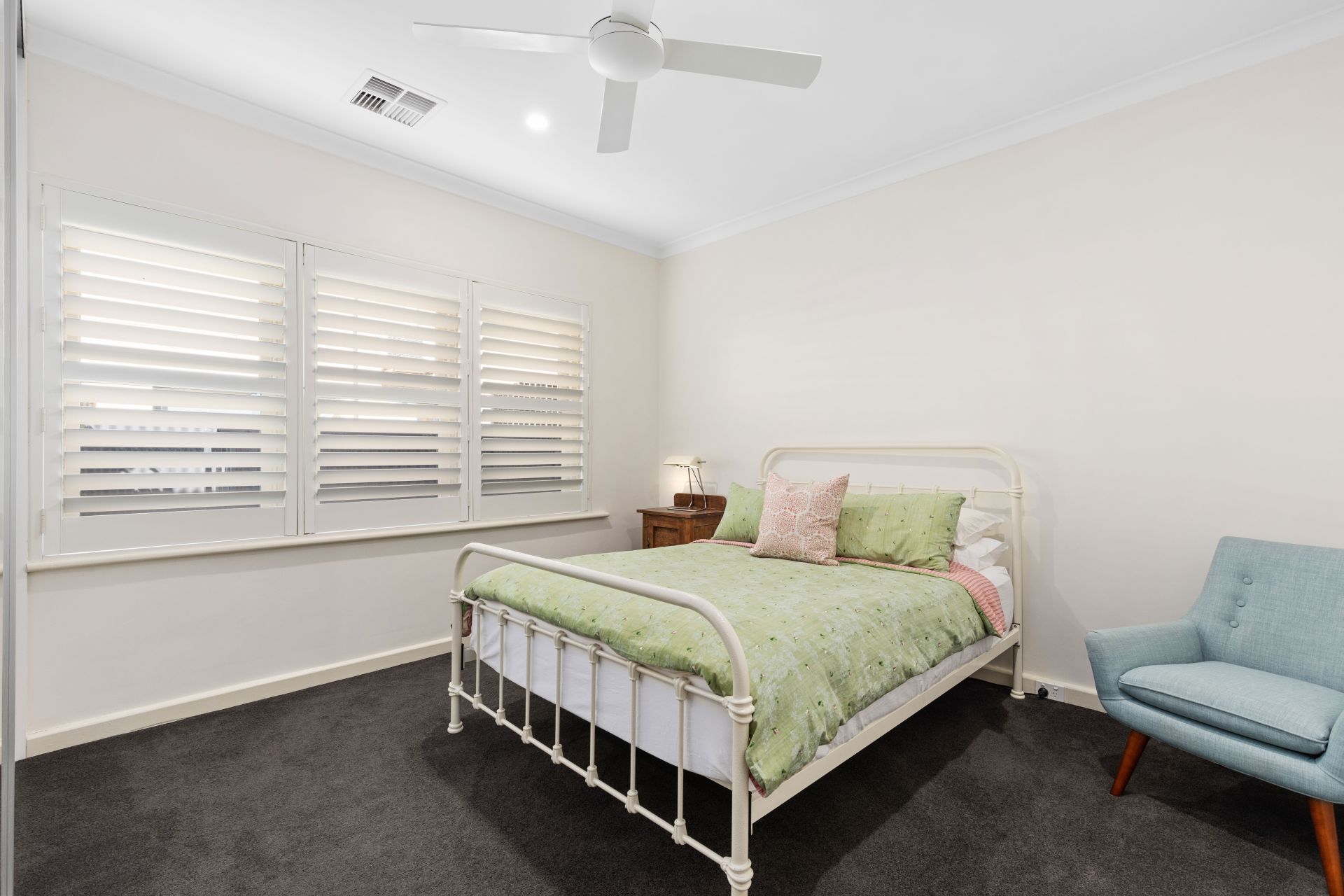 The two bedrooms are both absolutely huge and beautifully finished, with plantation shutters and ceiling fans. The master suite to the rear of the property has an enormous walk in wardrobe and a study room, overlooking the back yard. The second bedroom also has a large built in wardrobe. The bathroom has been finished with floor to ceiling tiles, walk in shower and huge vanity. There is also a second separate toilet. For year round comfort, ducted reverse cycle air-conditioning has been installed and as an extra bonus there is a gas fireplace in the living room.
