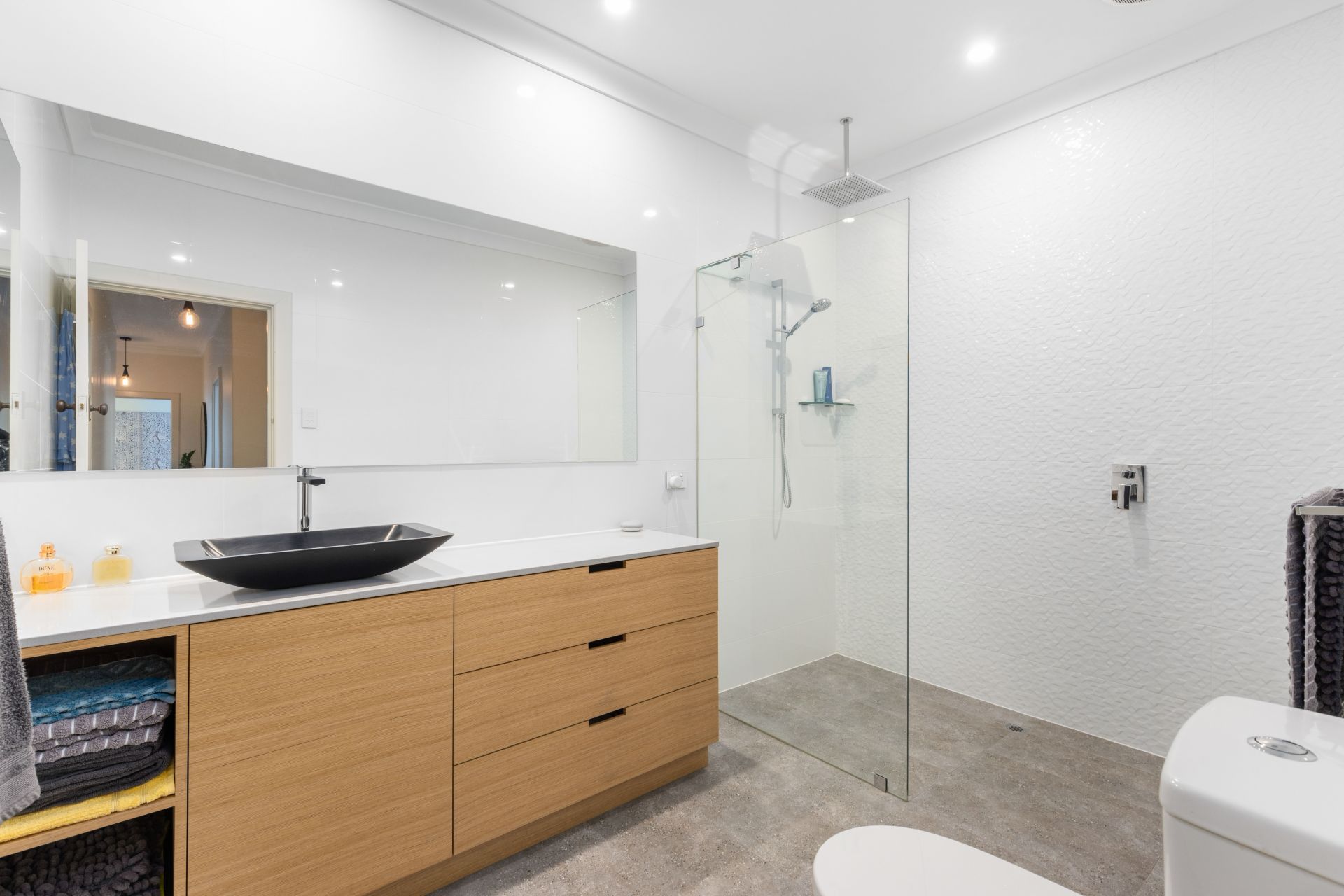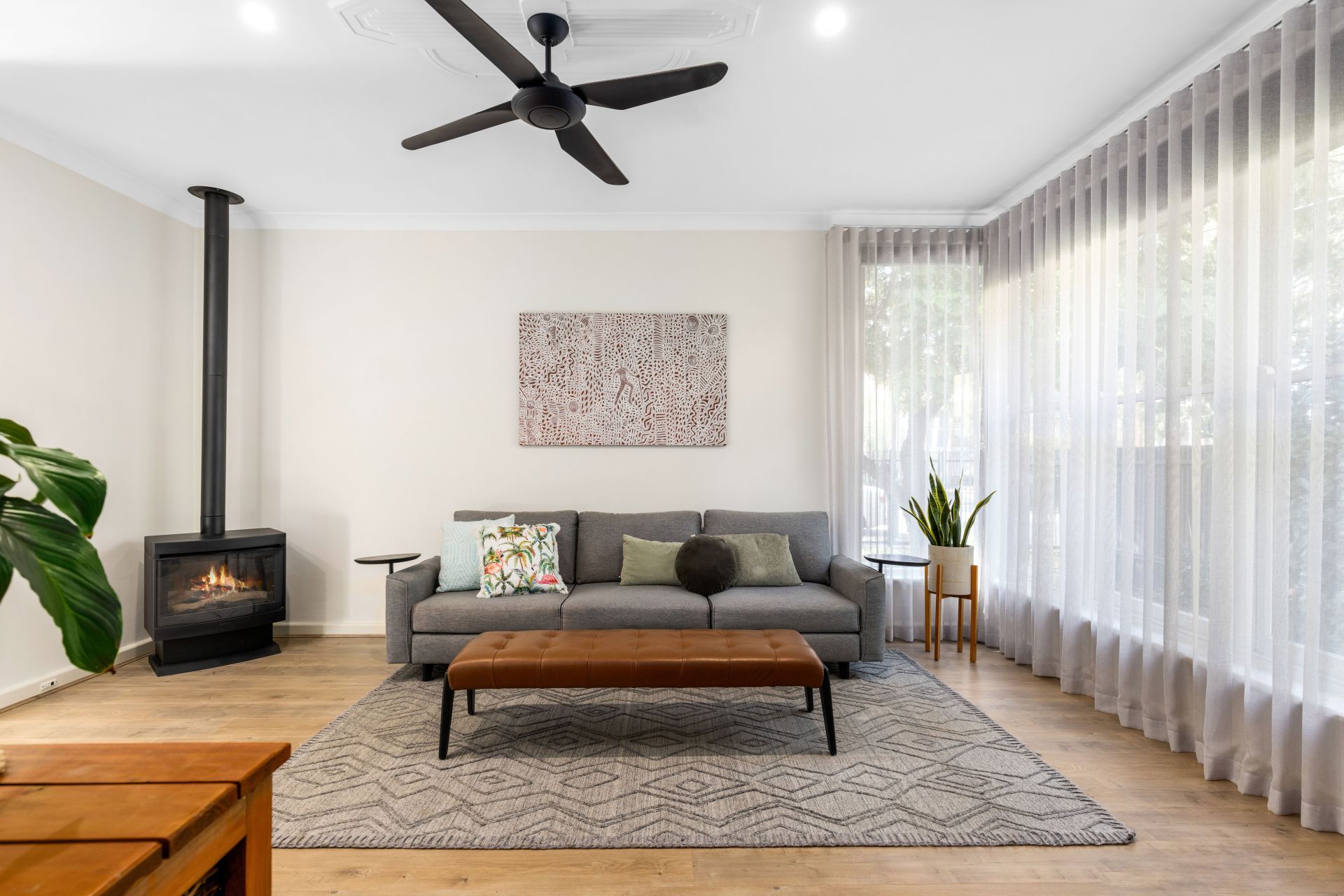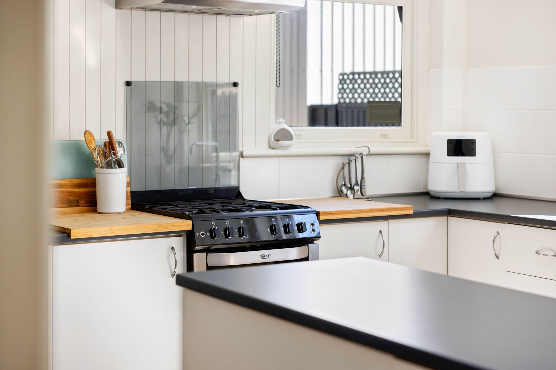 The two bedrooms are both absolutely huge and beautifully finished, with plantation shutters and ceiling fans. The master suite to the rear of the property has an enormous walk in wardrobe and a study room, overlooking the back yard. The second bedroom also has a large built in wardrobe. The bathroom has been finished with floor to ceiling tiles, walk in shower and huge vanity. There is also a second separate toilet. For year round comfort, ducted reverse cycle air-conditioning has been installed and as an extra bonus there is a gas fireplace in the living room.
