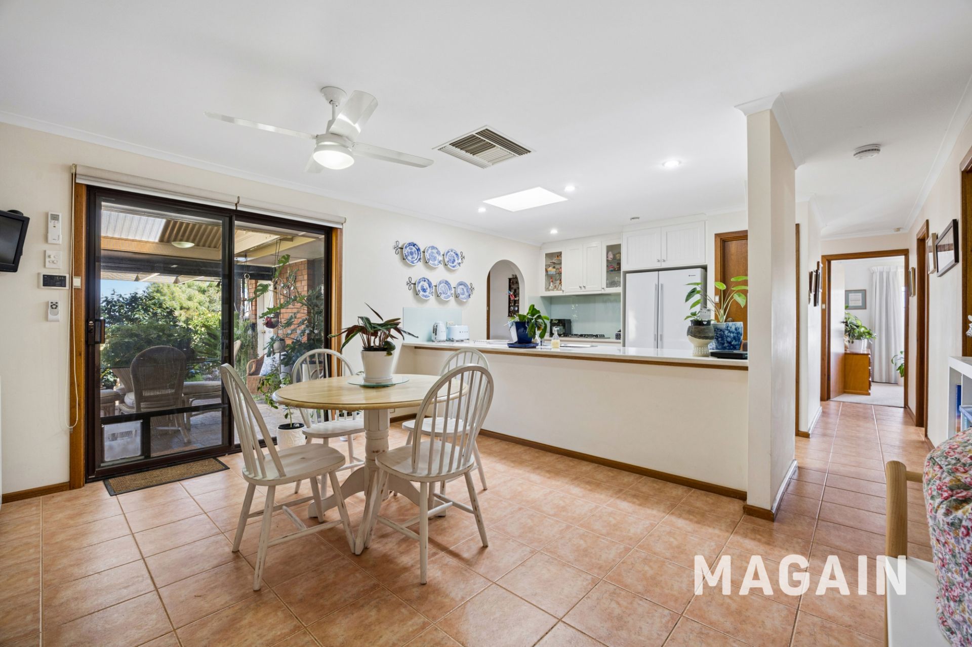 Step inside to a welcoming main living zone featuring soft carpets underfoot, a ceiling fan for summer comfort and a gas fireplace for the cooler months. This space flows effortlessly through to a dedicated dining area - perfect for everyday family meals.