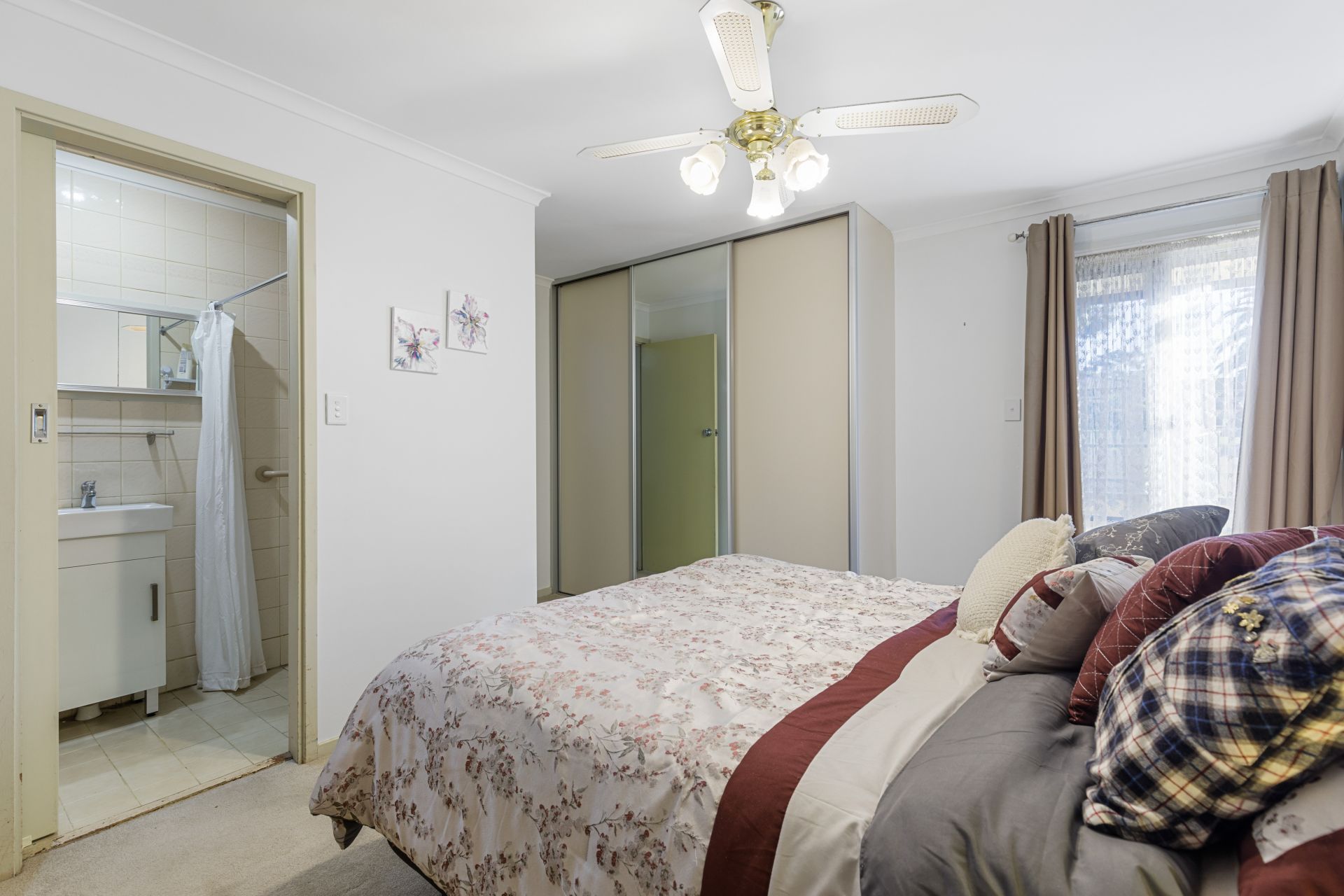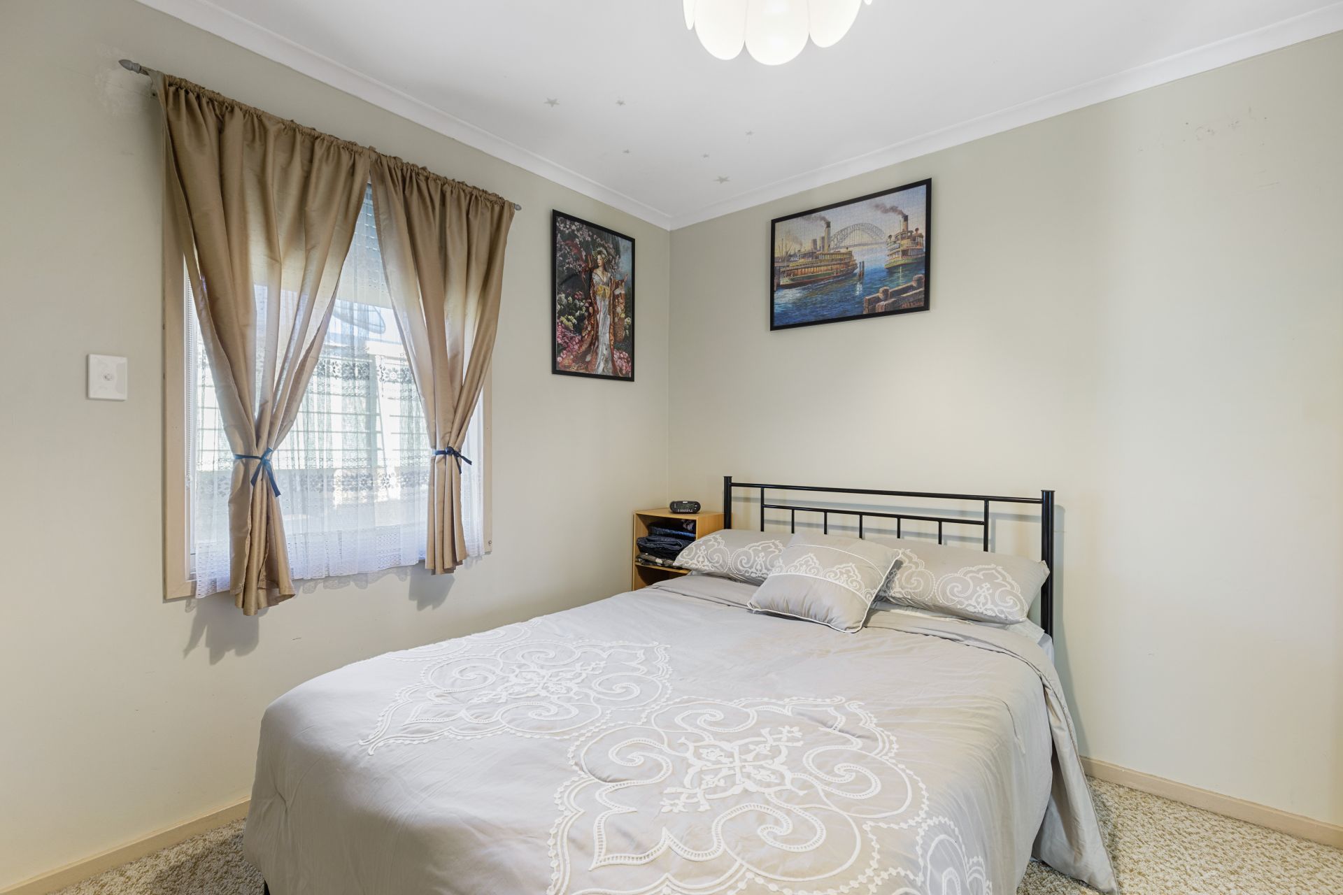 Inside to the right is the spacious lounge which is carpeted. Main bedroom with en suit goes off to the left and has a bidet installed. The kitchen/dining is at the centre of the home. Split system air conditioning keeps the house at a good temperature any time of year. The main bathroom, 2nd bedroom and laundry lead off the central living area. 2 bedrooms are carpeted and have built in wardrobes, 3rd bedroom has a floating floor and a small balcony looking out to the garden. There is a rumpus room/craft room which has been built on at the side with sliding glass doors, which could become a 4th bedroom if needed.