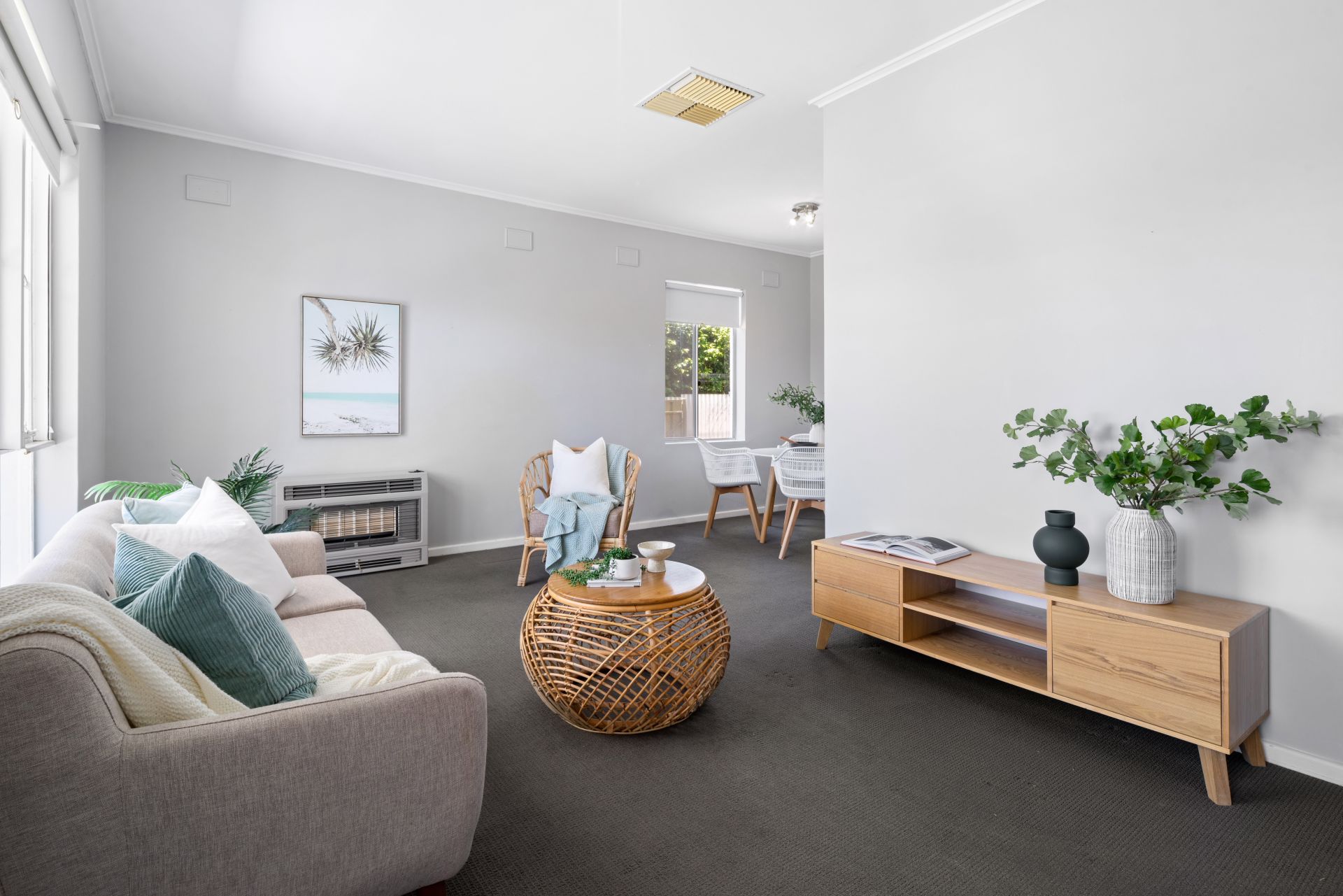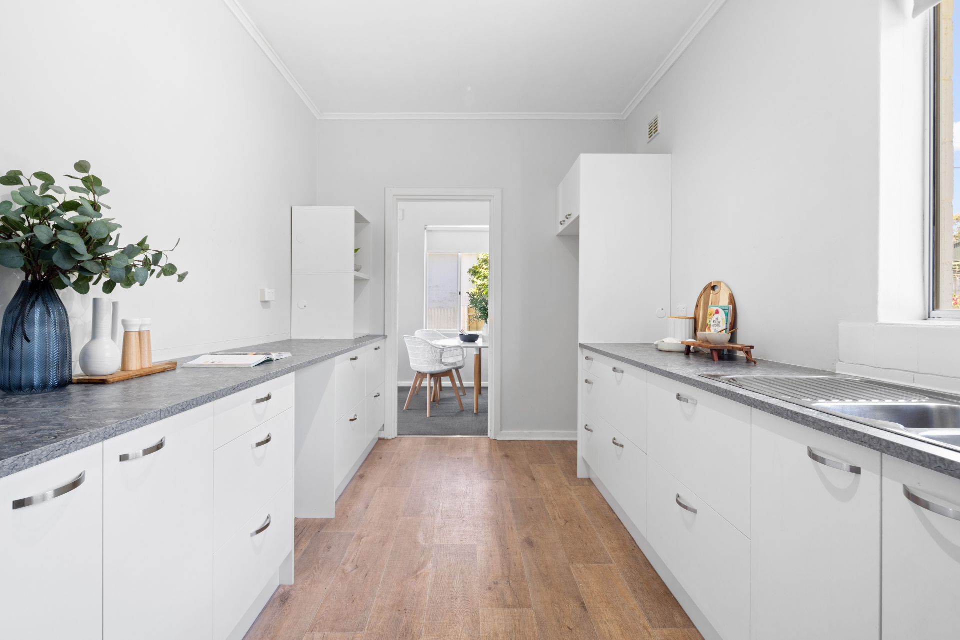 As you enter the home you are greeted with a beautiful, north facing lounge filled with natural light. The dining room flows smoothly from the lounge and into the updated kitchen. The kitchen has an abundance of bench space and cupboard storage and overlooks the huge backyard. The three bedrooms are a great size, with the master bedroom featuring a large built in wardrobe and ceiling fan. The bathroom has been beautifully updated and designed for easy access and also has a separate toilet. For year round comfort, ducted evaporative air conditioning has been installed and gas heating is in the lounge room.