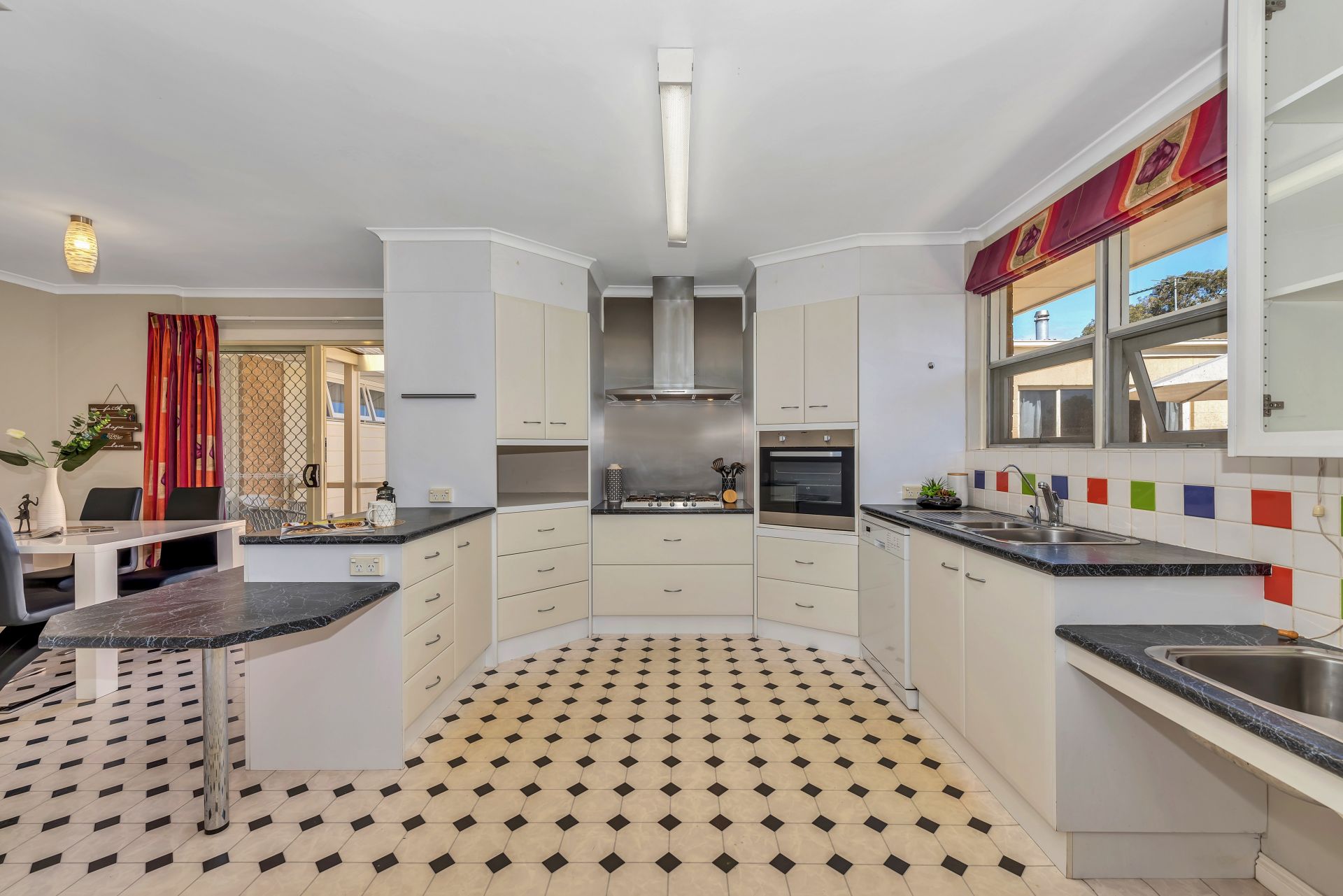 Moving into the heart of the home is the kitchen and dining area. The kitchen is well equipped with a dishwasher and a Smeg gas cook-top . A unique feature of this home is that it has bench space and sinks not only for the chef of the home, but also for kids who may want to join in the cooking adventure. The main bathroom has been tastefully updated and features a spa bath and separate toilet. The laundry is also great size and next to the laundry is a second toilet and shower.