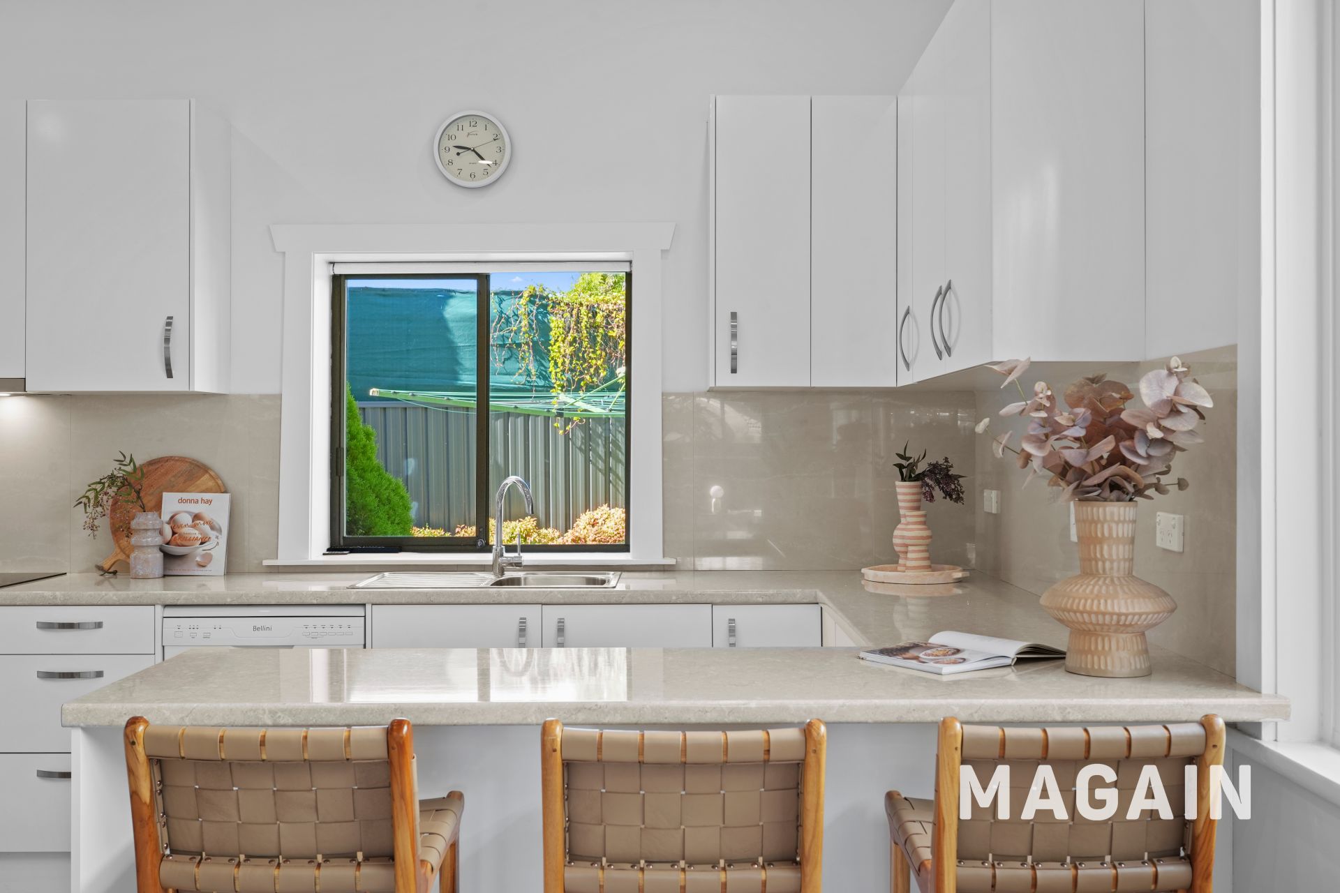 The updated kitchen is both practical and stylish, offering generous bench space and connecting effortlessly to a large open-plan living area - perfect for entertaining or family gatherings. A succession of windows frames this space, flooding it with natural light and creating inviting zones for working from home, creative pursuits, or simply relaxing.