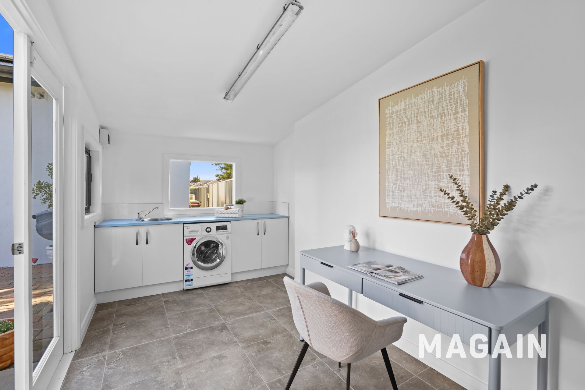 To the south, landscaped gardens feature lawn, a clothesline and a versatile freestanding room. Currently configured as a laundry, this separate space could easily become a gym, sauna, home office, consulting room or playroom - adapting to suit your needs.