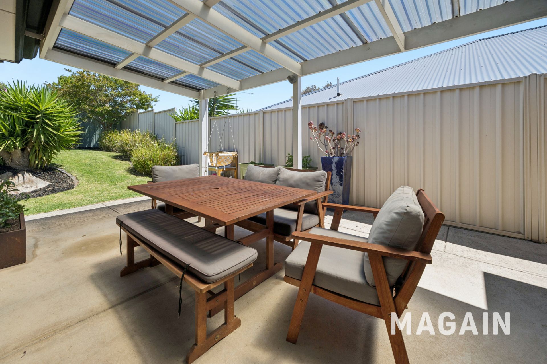 If the interior hasn't already captured your attention, the exterior is sure to impress. The home's façade is neat and well presented, framed by established trees and shrubs that add colour and street privacy. At the rear, an undercover verandah flows directly from the main living area, creating the ideal space for entertaining throughout the warmer months. Lush gardens border the property, while the grassy backyard provides a safe and inviting space for children and pets to play.