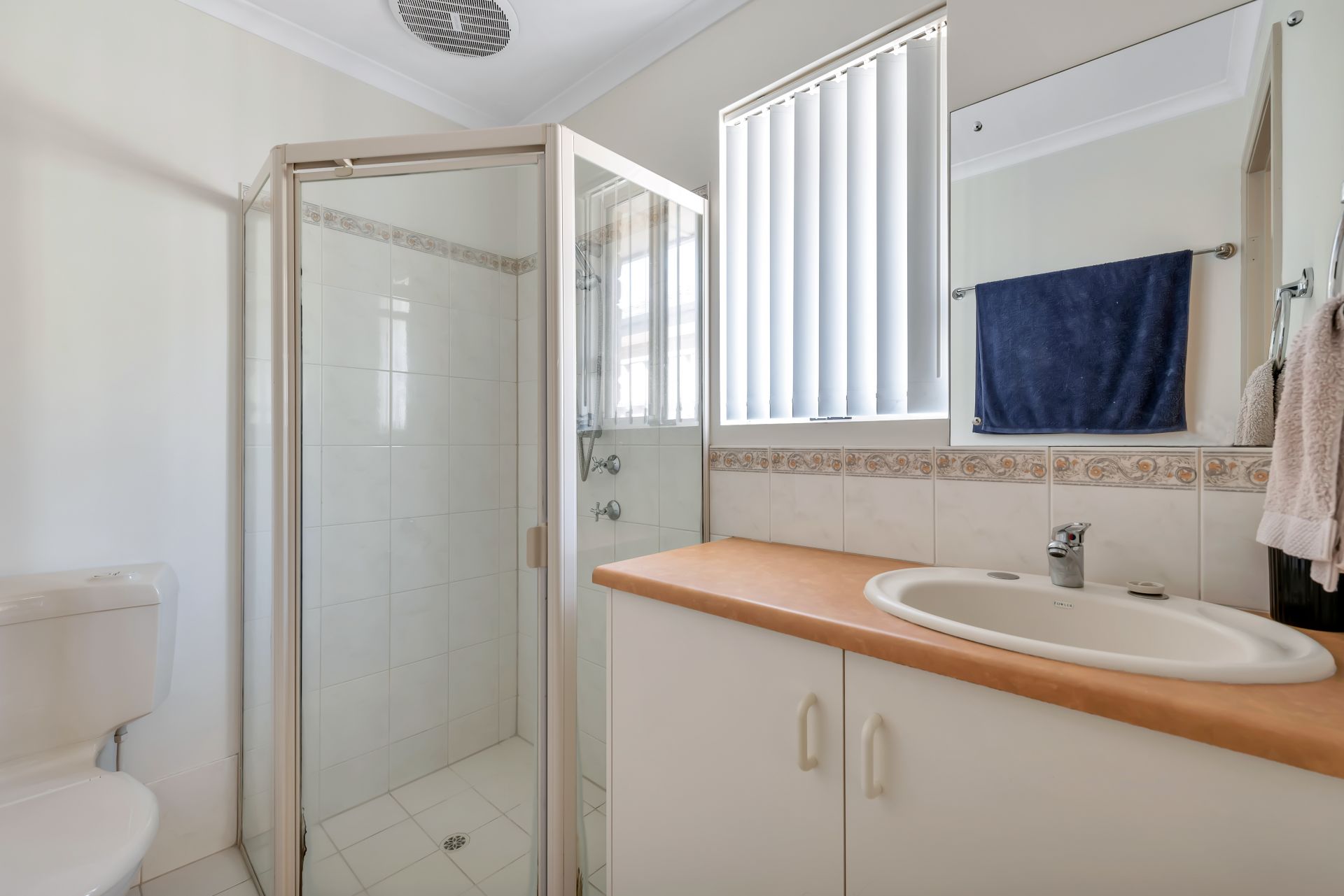 Like the entire home, the kitchen features modern down lights. It has ample bench, cupboard and storage space with a breakfast bar. Adjacent to the kitchen you will find the main bathroom, toilet and laundry, additional cupboard storage and access to the other side of home.