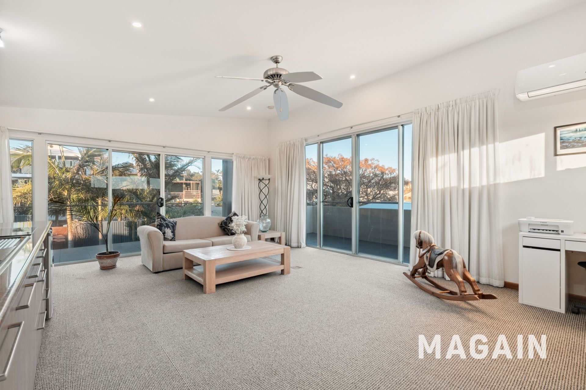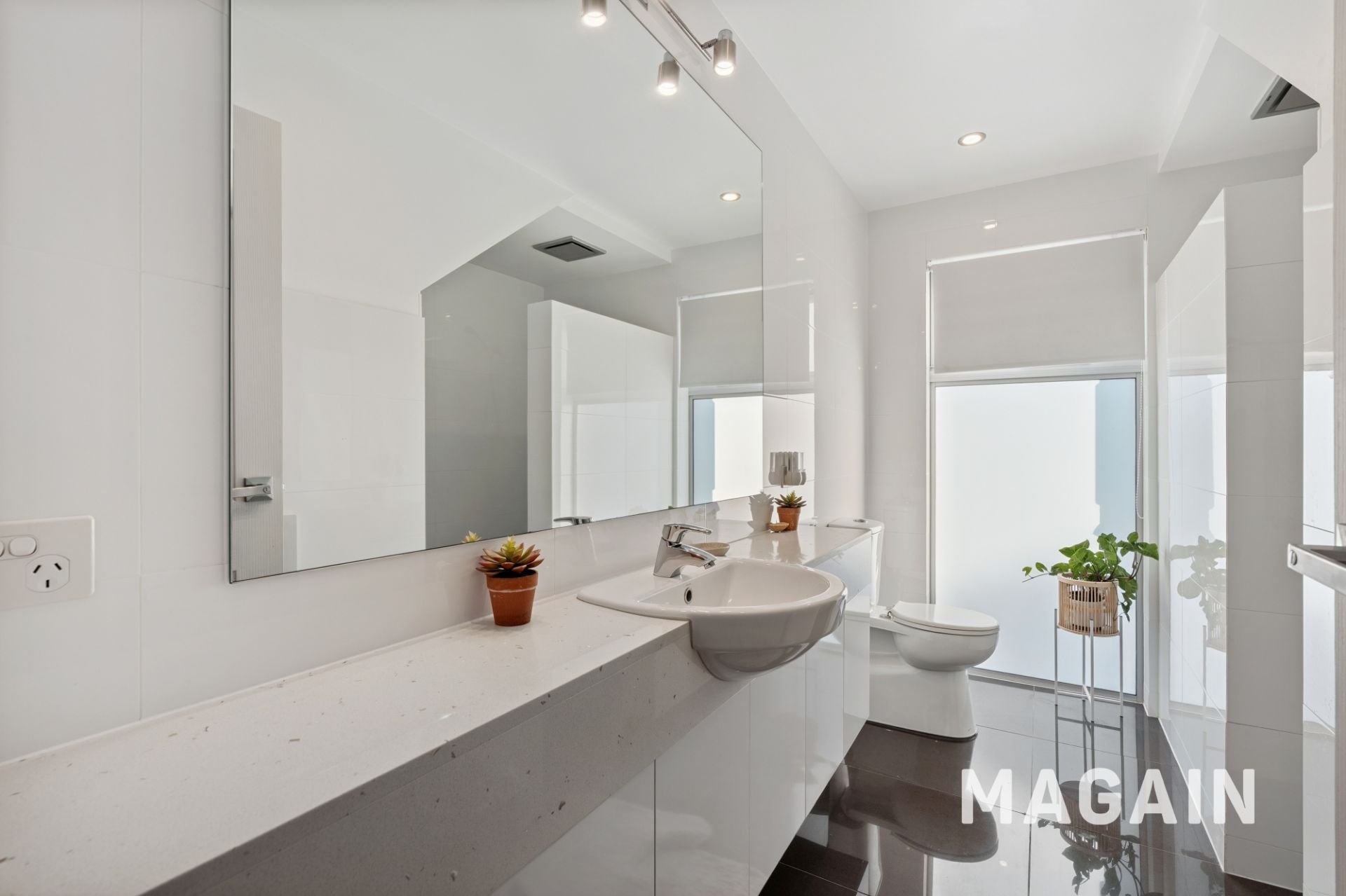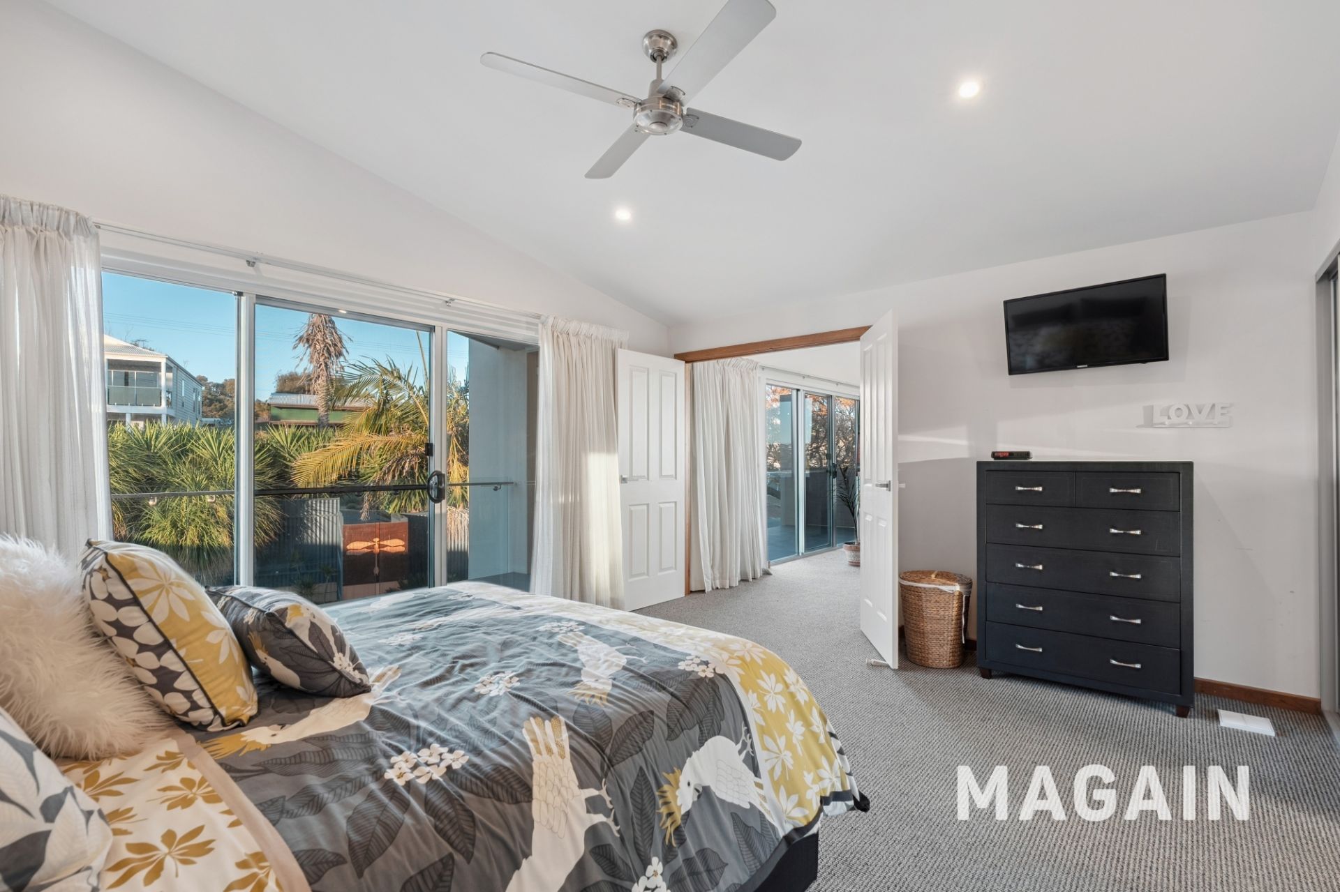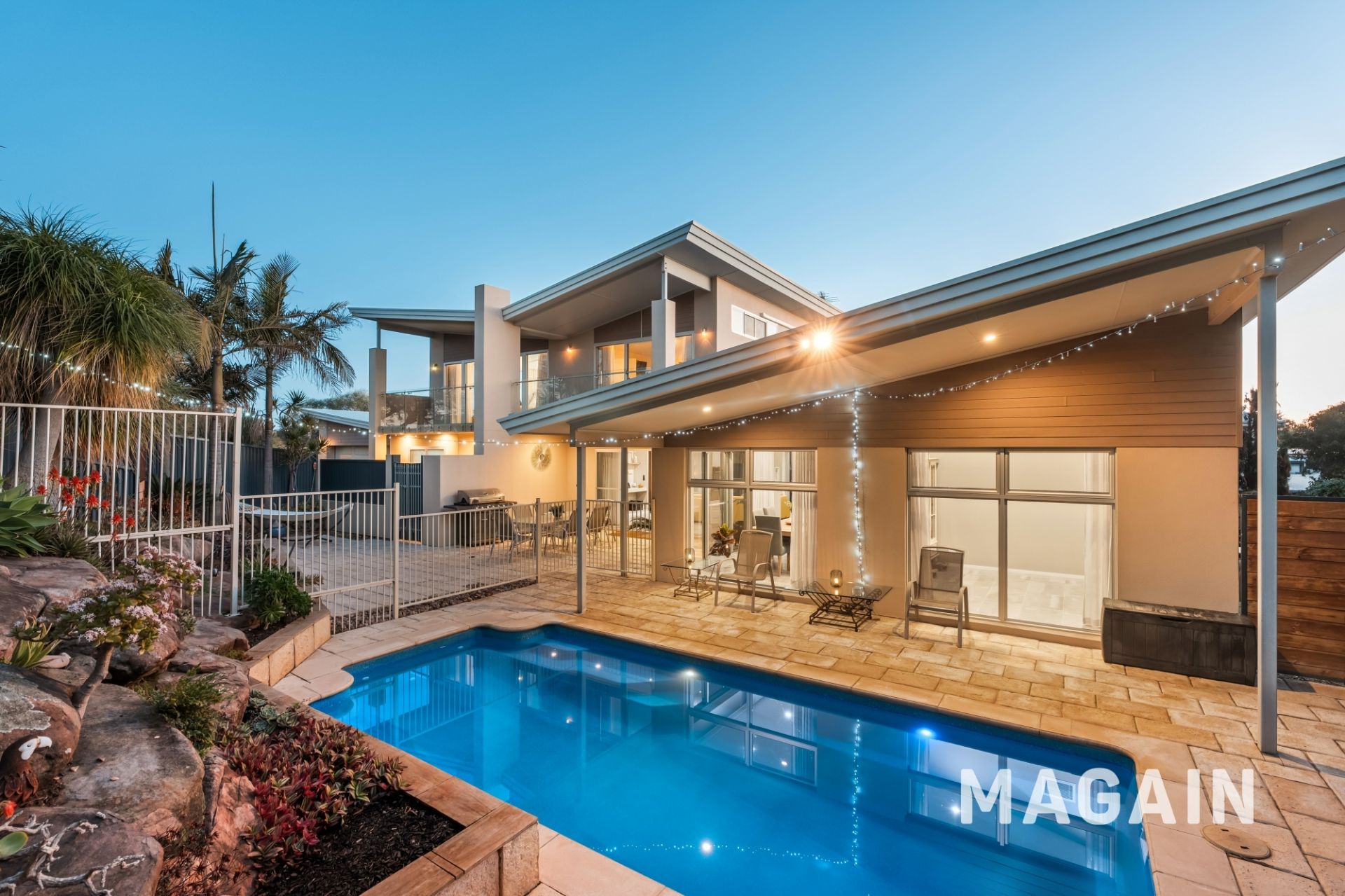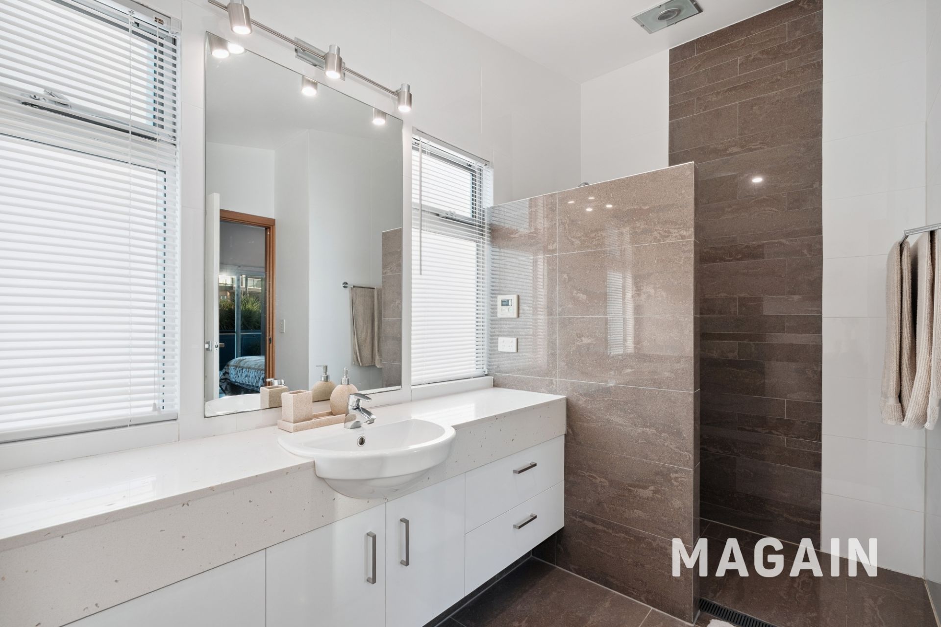 With four generously sized bedrooms and three bathrooms, everyone can enjoy their own space and privacy. The upper level serves as a tranquil parents' retreat, with a luxurious main suite featuring walk-in robe, ensuite, and private retreat area opening onto a balcony with views to the sea, a perfect spot for morning coffee or evening wine.