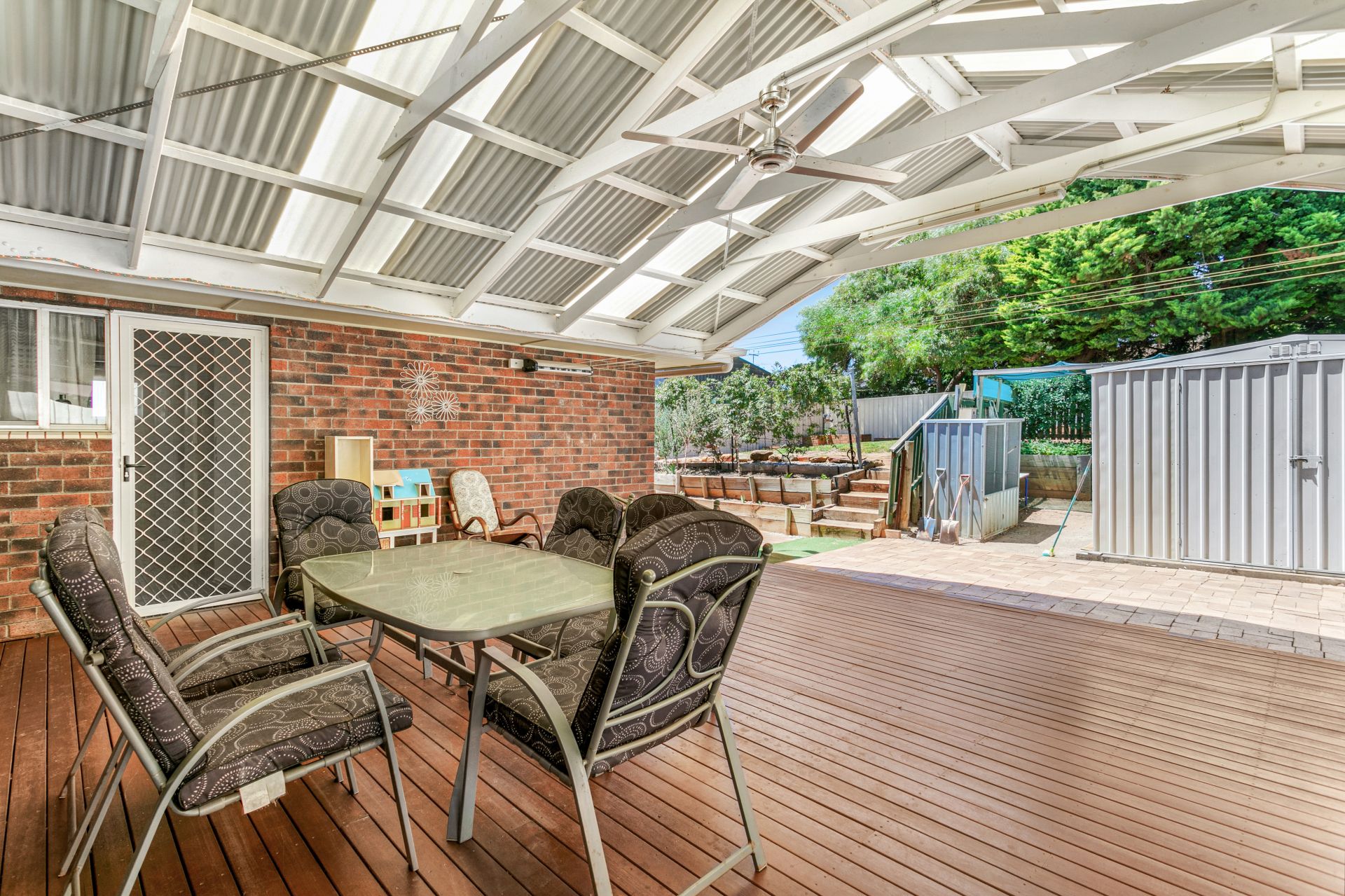 Stepping outside the huge selling point of this home lies obviously in the incredible decked entertaining area complete with a pergola. The split level yard boasts an incredible garden which is fully irrigated on a dripper system. A new fence has been installed to enclose in the entire block and the convenience of the garden shed offers a storage solution for all your garden tools.