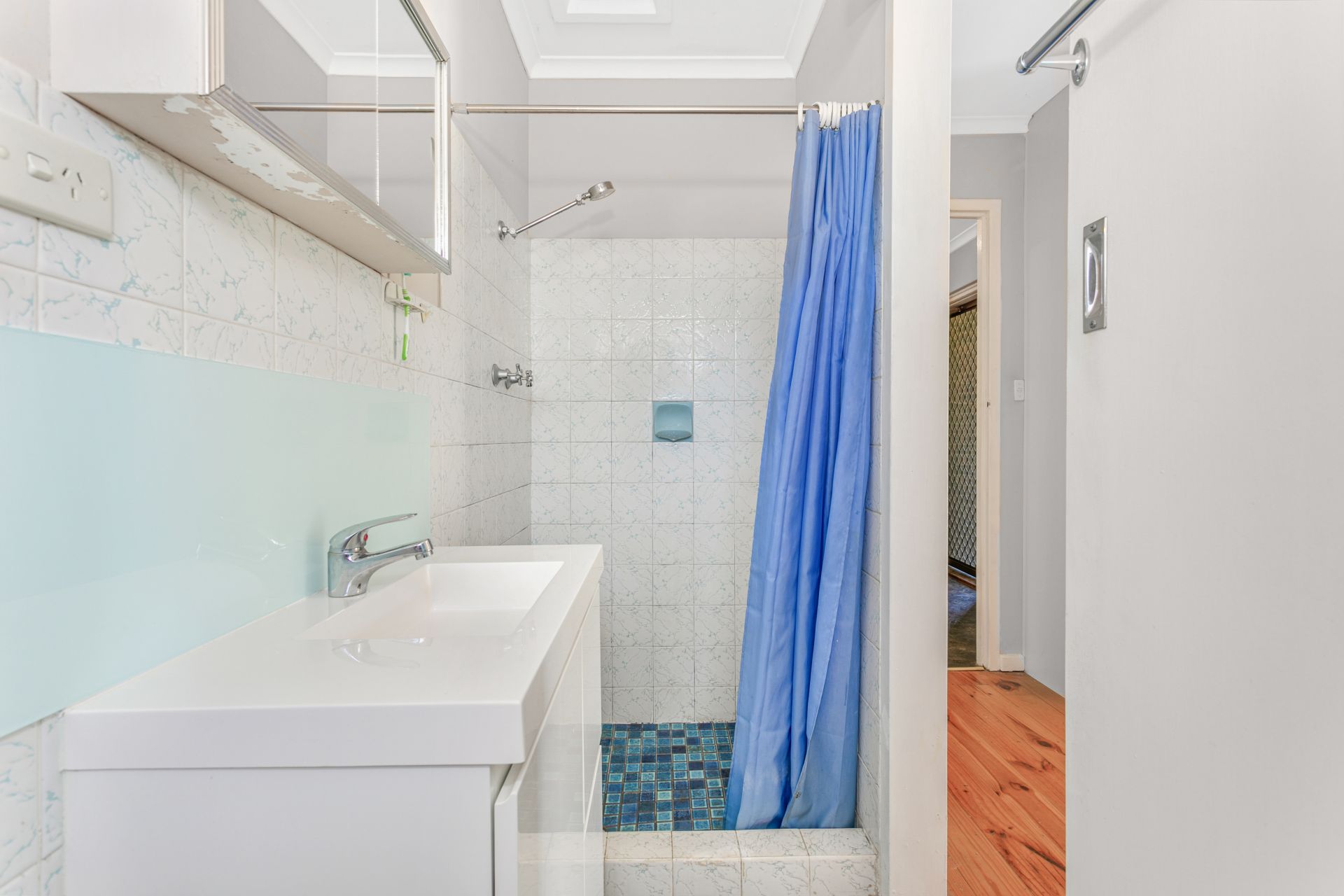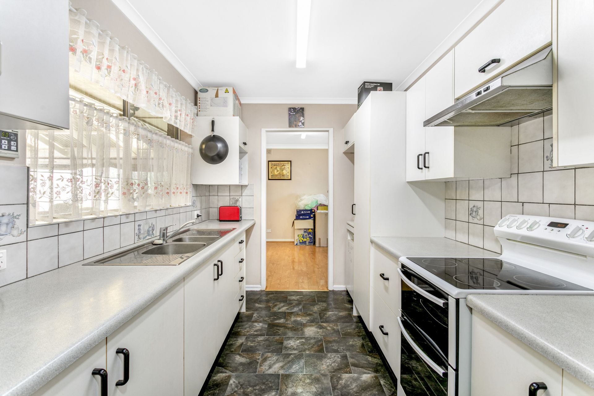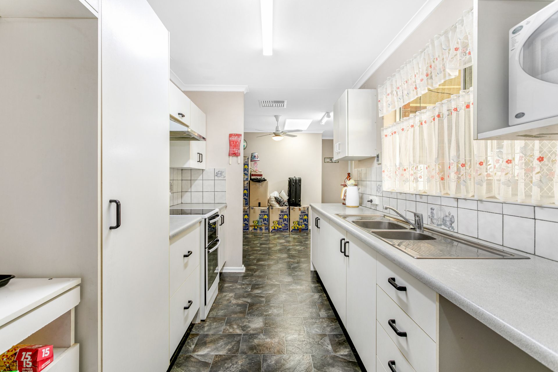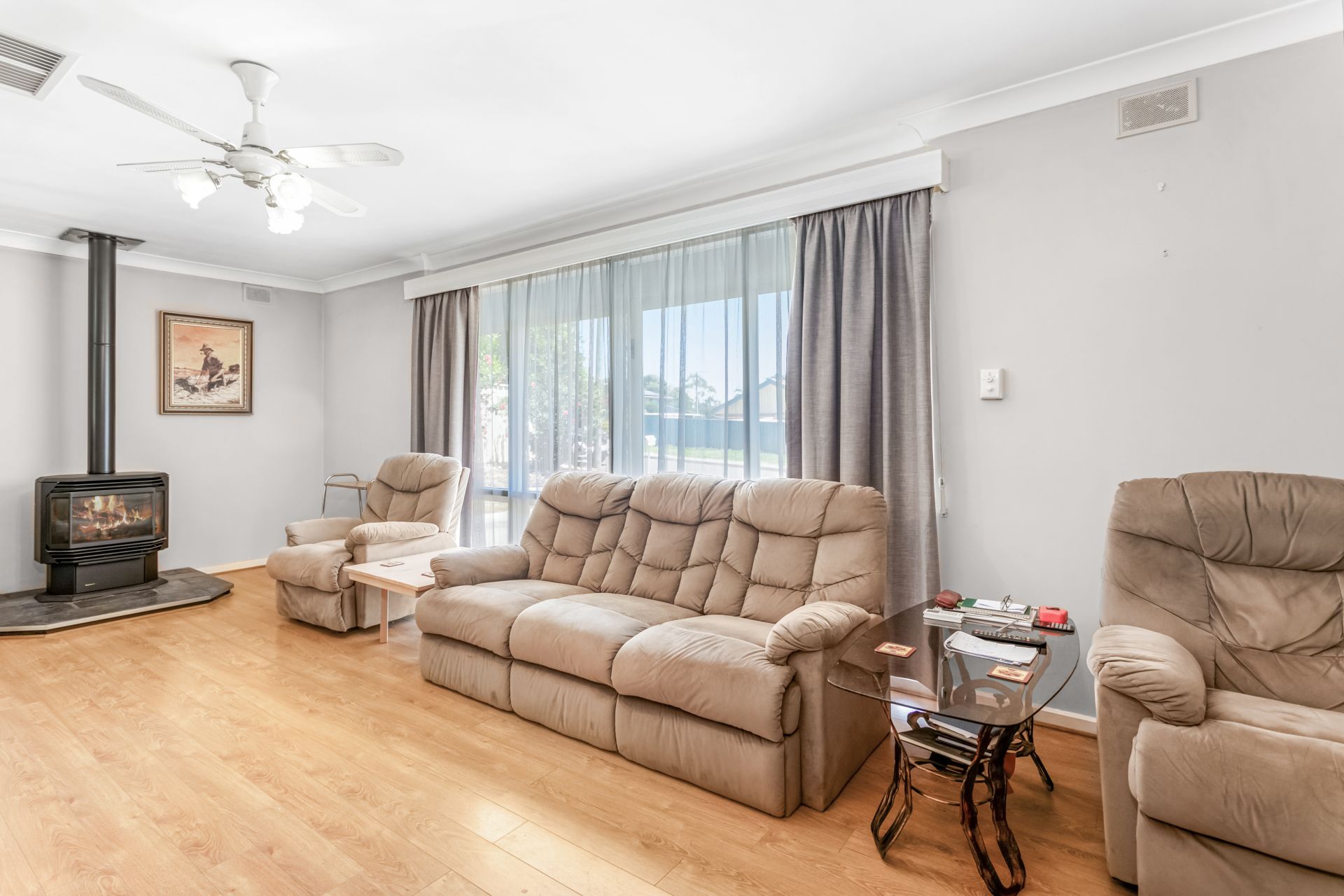 Stepping inside the double french doors you are greeted with a spacious lounge and dining are complete with gas fire place for the cool winters and split system to quickly cool you down in summer. The galley kitchen has ample space for the chef of the family and boasts a free standing electric stove with a double oven and an abundance of cupboard space.