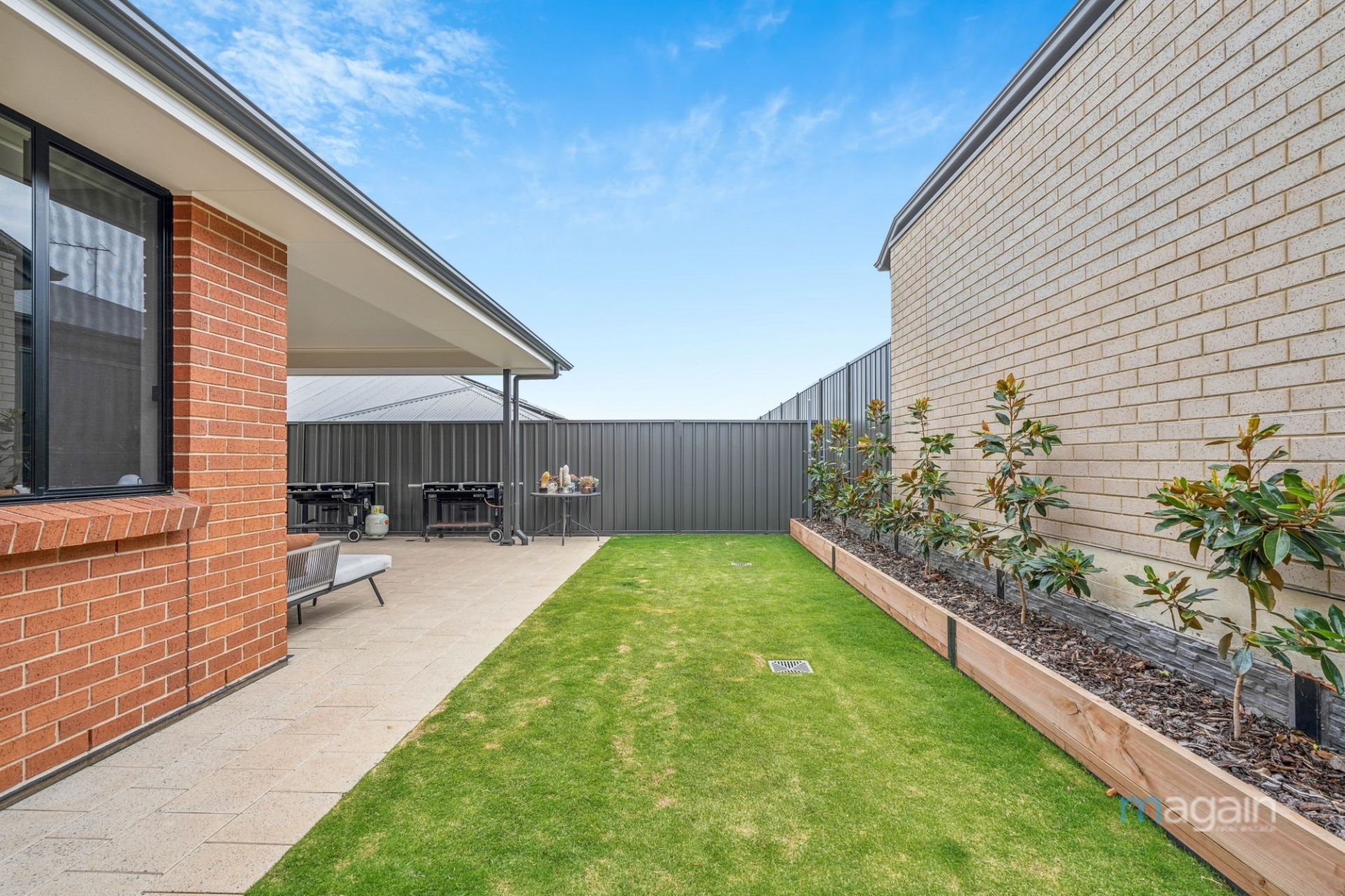 Outside, the alfresco entertaining area is perfect for year-round enjoyment, whether hosting gatherings or unwinding after a long day. The irrigated gardens add a touch of greenery while requiring minimal upkeep, creating a serene outdoor space to enjoy with family and friends.