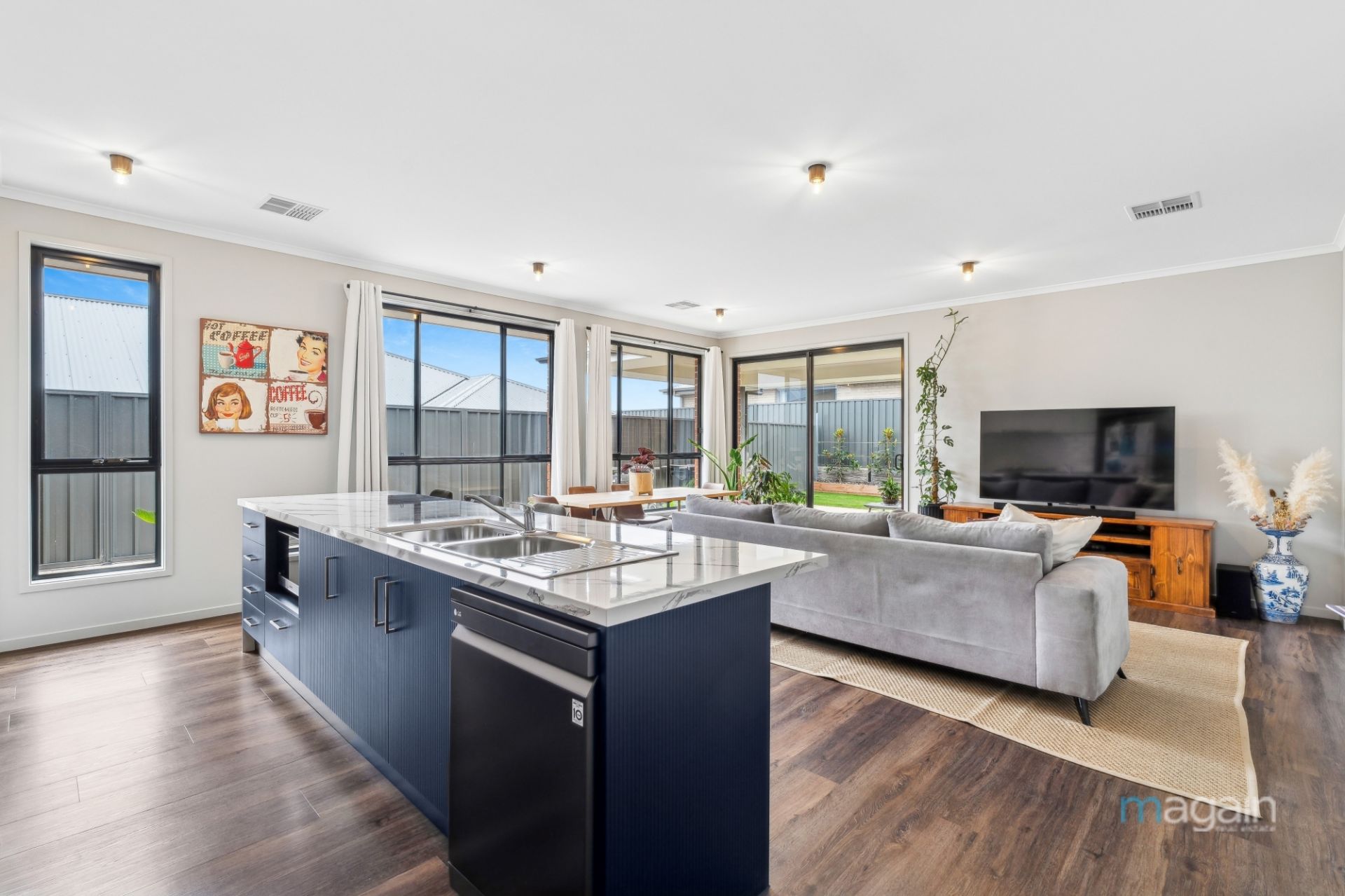At the heart of the home lies the stunning open-plan kitchen, living, and dining area. Designed with both practicality and style in mind, the kitchen is a chef's dream, featuring a 900mm oven, dishwasher, walk-in pantry, and ample bench space. Whether you're preparing family meals or hosting friends, this space delivers in every way. For more formal occasions, a separate lounge room offers an inviting and intimate space to relax or entertain.