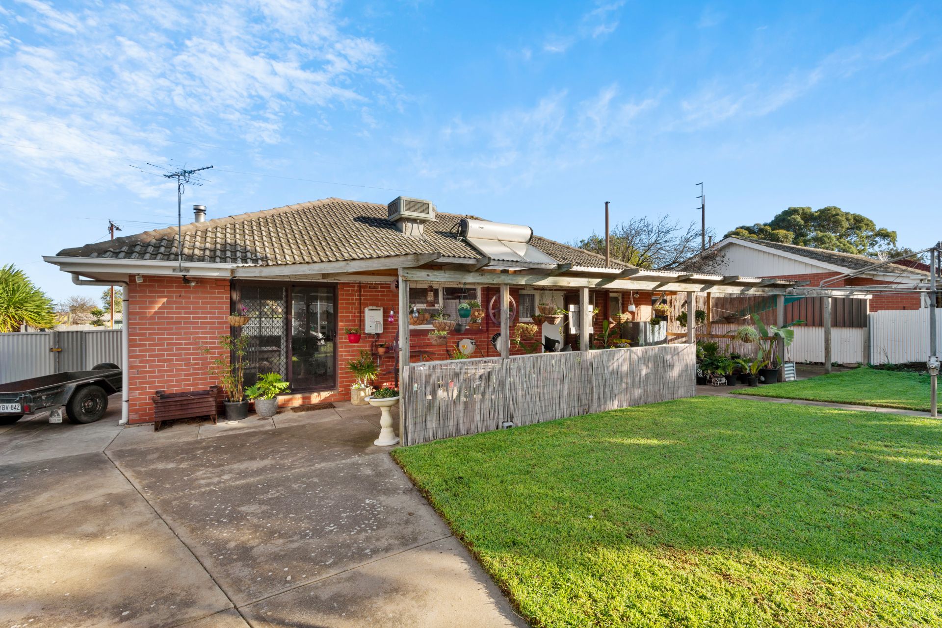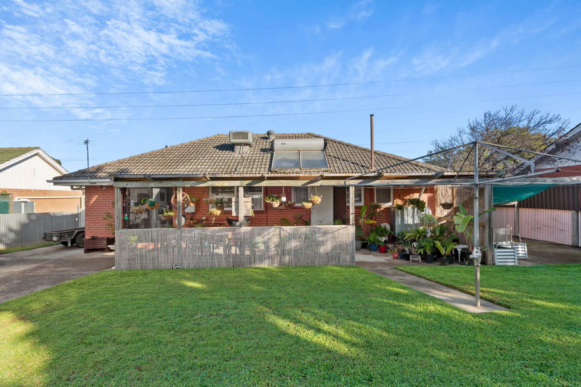 There are three bedrooms all great size, the master complete with built in wardrobes and split system air conditioning. The third bedroom also has a built in wardrobe and ceiling fan. The bathroom has been well maintained and services the home well with it's separate toilet. For comfort during the summer, evaporative air conditioning has been installed throughout the home.