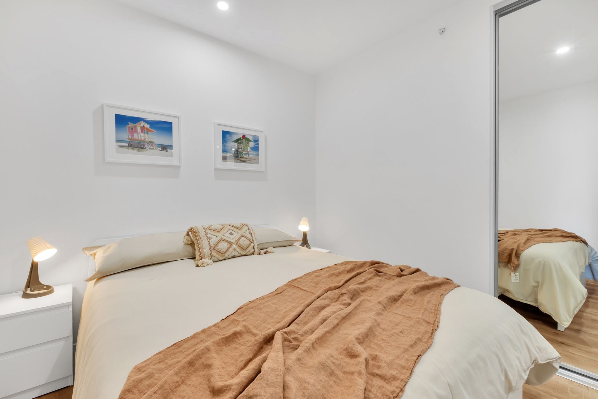 > Two spacious bedrooms with queen size beds with all linen included plus side tables and built-in robes - We all love storage space.
